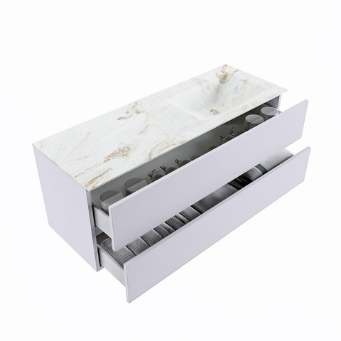 MONDIAZ VICA-DLUX Badkamermeubelset - 130cm - onderkast cale- 2 lades - inbouw wastafel cloud rechts - zonder kraangaten - 60cm hoge versie - frape
