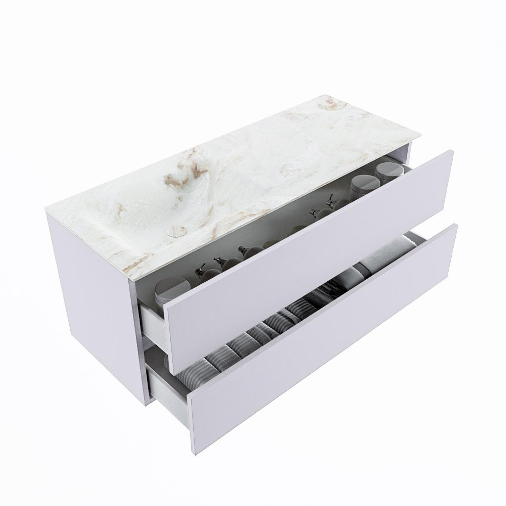 MONDIAZ VICA-DLUX Badkamermeubelset - 120cm - onderkast cale- 2 lades - inbouw wastafel cloud links - 1 kraangat - 60cm hoge versie - frape
