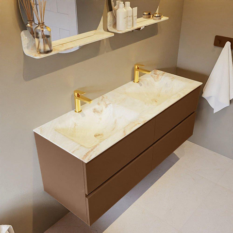 MONDIAZ VICA-DLUX Badkamermeubelset - 130cm - onderkast rust - 4 lades - inbouw wastafel cloud dubbel - 2 kraangaten - 60cm hoge versie - frape