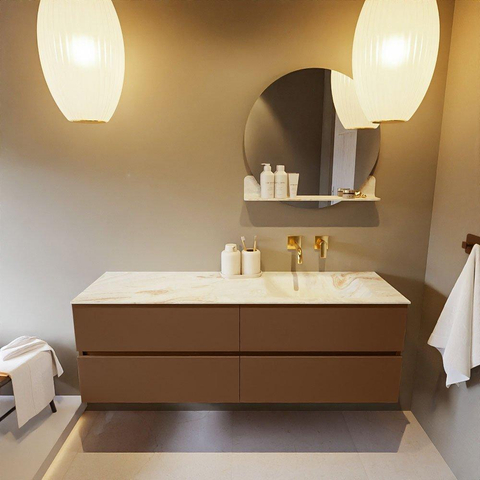 MONDIAZ VICA-DLUX Badkamermeubelset - 150cm - onderkast rust - 4 lades - inbouw wastafel cloud rechts - zonder kraangaten - 60cm hoge versie - frape