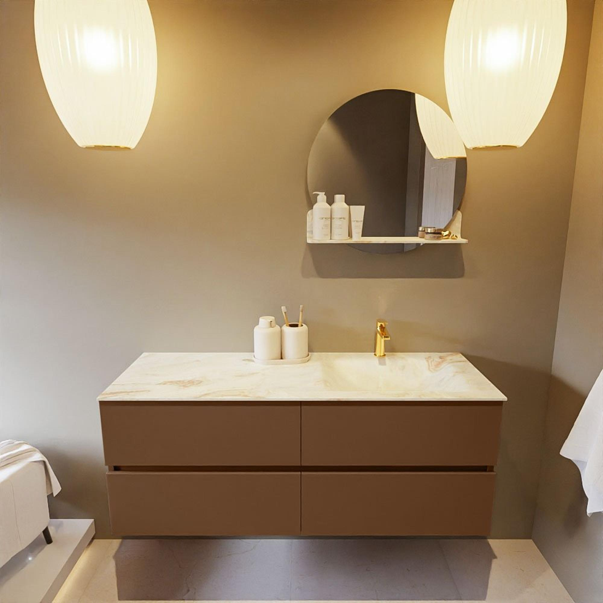 MONDIAZ VICA-DLUX Badkamermeubelset - 130cm - onderkast rust - 4 lades - inbouw wastafel cloud rechts - 1 kraangat - 60cm hoge versie - frape