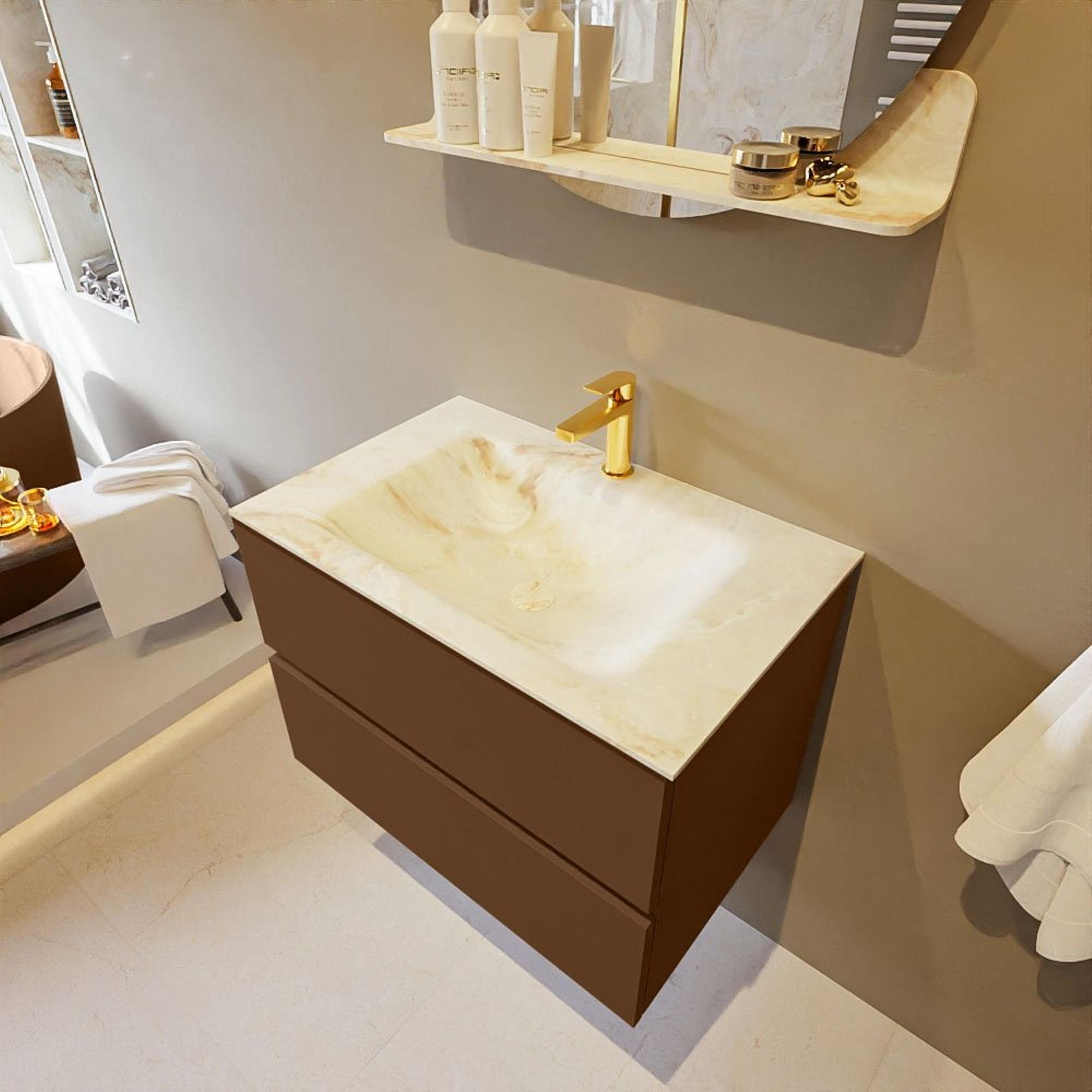 MONDIAZ VICA-DLUX Badkamermeubelset - 70cm - onderkast rust- 2 lades - inbouw wastafel cloud midden - 1 kraangat - 60cm hoge versie - frape