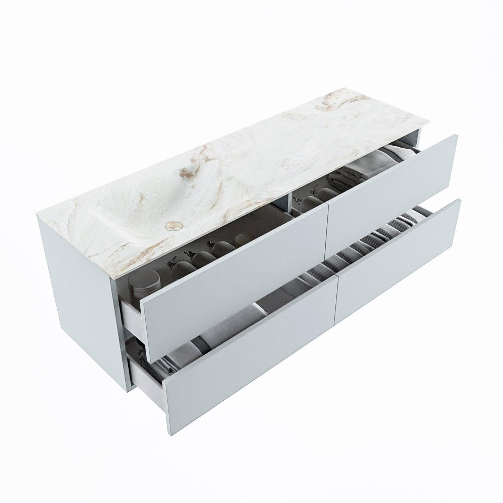 MONDIAZ VICA-DLUX Badkamermeubelset - 150cm - onderkast clay - 4 lades - inbouw wastafel cloud links - zonder kraangaten - 60cm hoge versie - frape