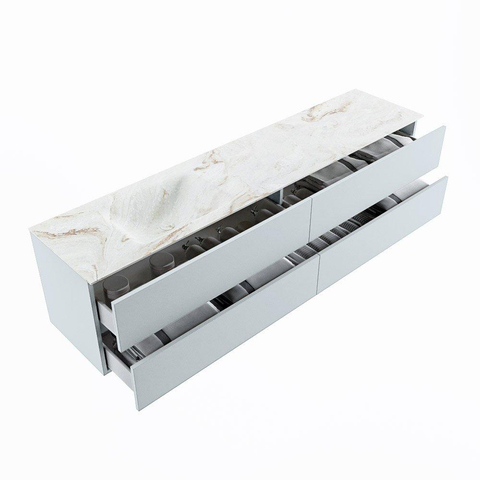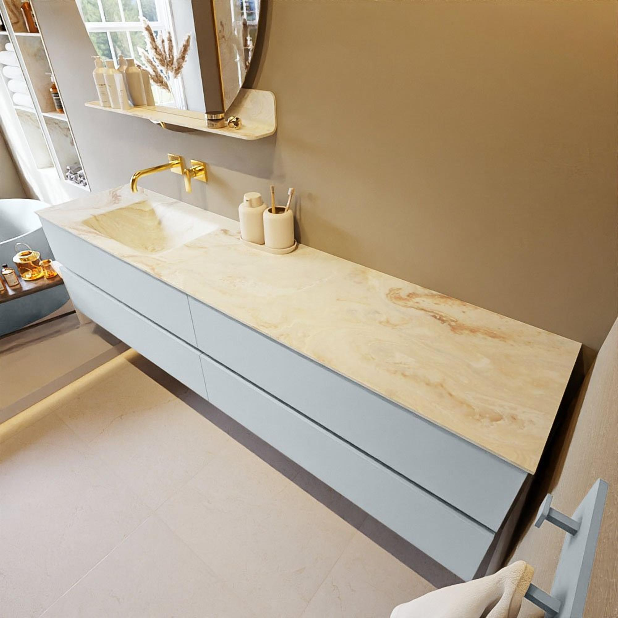 MONDIAZ VICA-DLUX Badkamermeubelset - 200cm - onderkast clay - 4 lades - inbouw wastafel cloud links - zonder kraangaten - 60cm hoge versie - frape