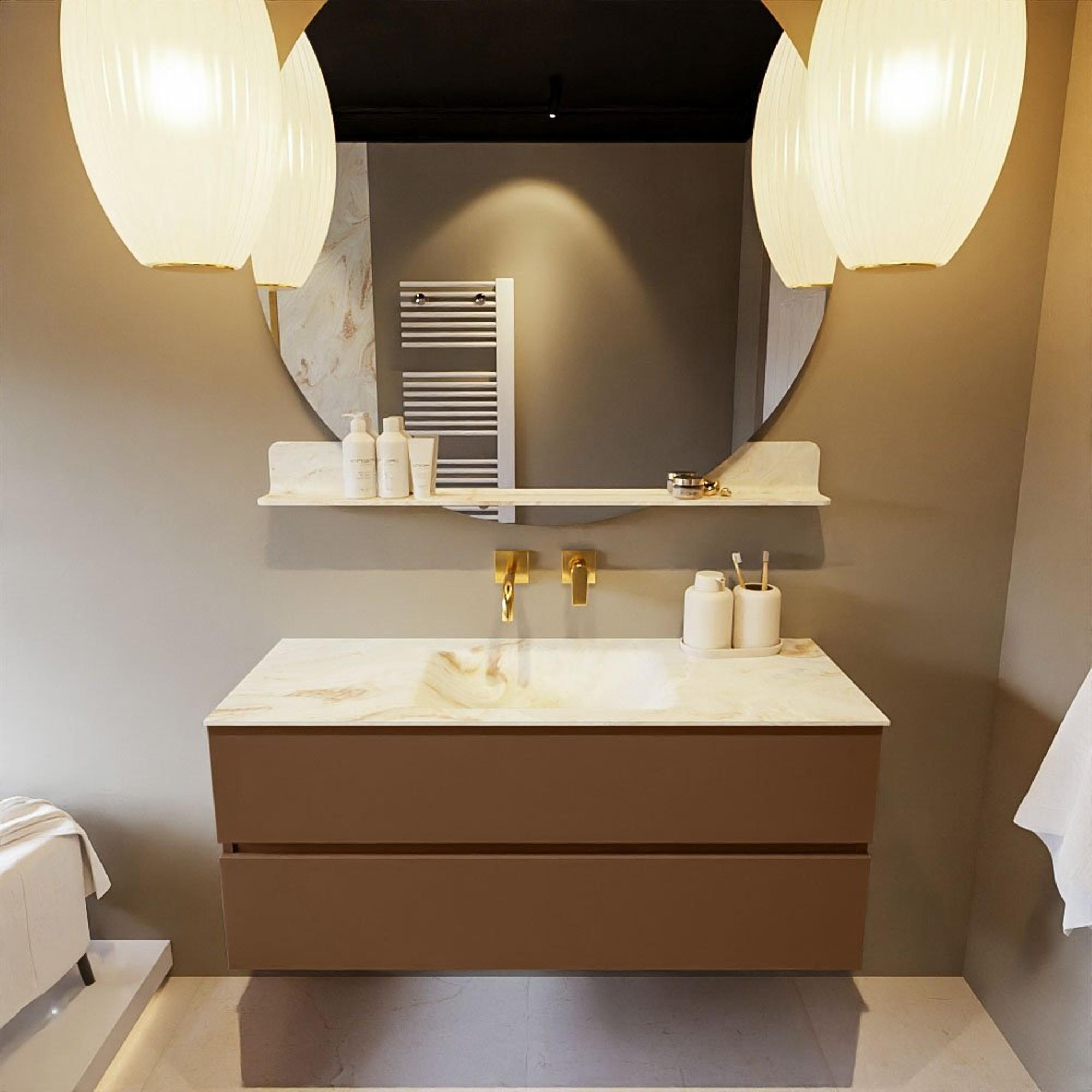MONDIAZ VICA-DLUX Badkamermeubelset - 120cm - onderkast rust- 2 lades - inbouw wastafel cloud midden - zonder kraangaten - 60cm hoge versie - frape