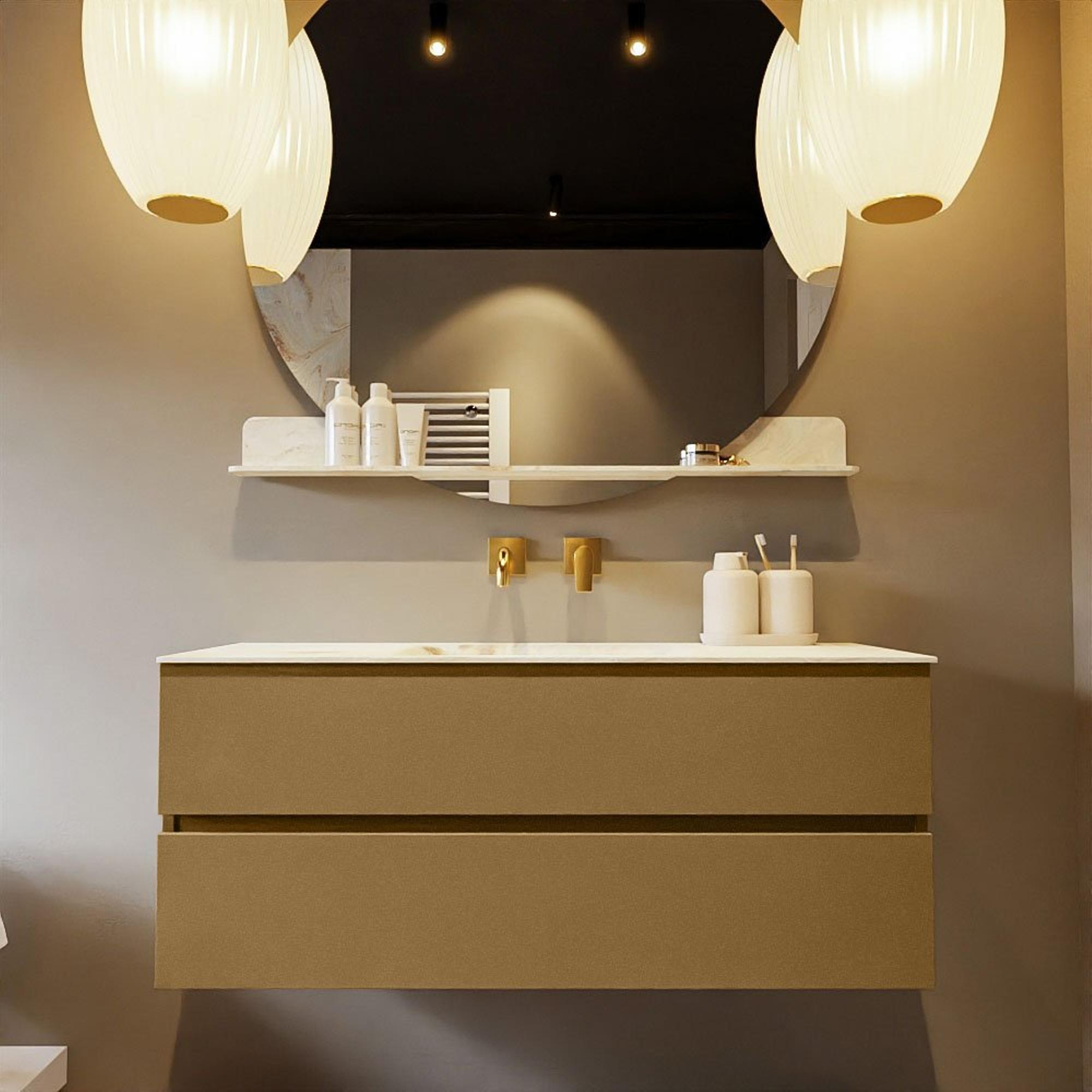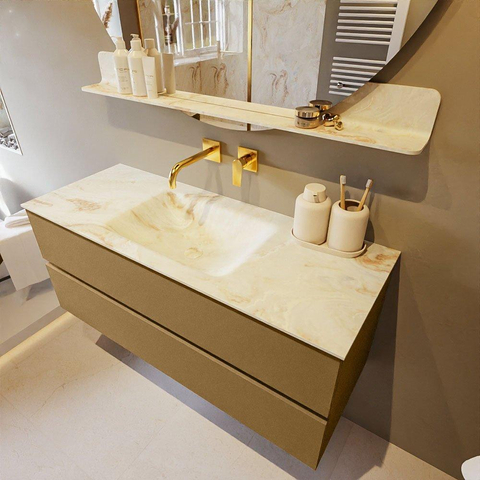 MONDIAZ VICA-DLUX Badkamermeubelset - 120cm - onderkast oro- 2 lades - inbouw wastafel cloud midden - zonder kraangaten - 60cm hoge versie - frape