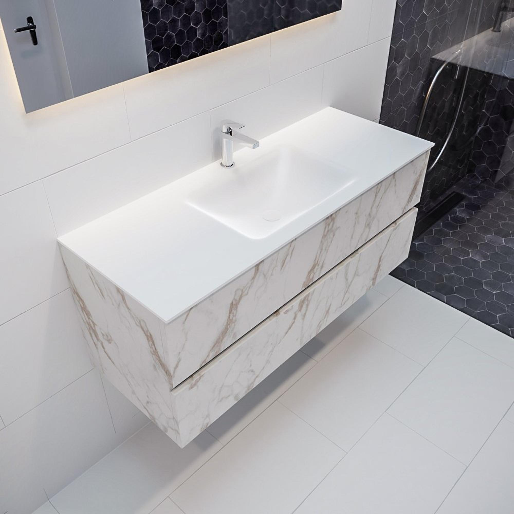 MONDIAZ VICA Badkamermeubelset - 120cm - onderkast carrara - 2 lades - wastafel cloud midden - 1 kraangat XL versie 60cm hoog