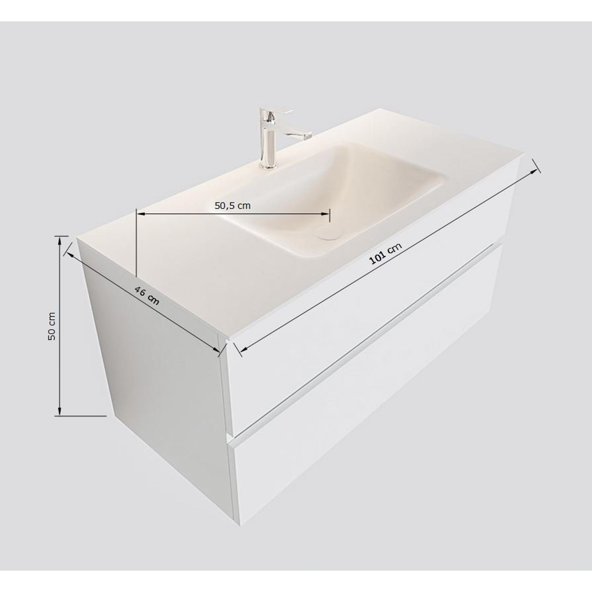 MONDIAZ VICA Badkamermeubelset - 100cm - onderkast dark grey - 2 lades- wastafel CLOUD midden zonder kraangaten - XL versie 60cm hoog