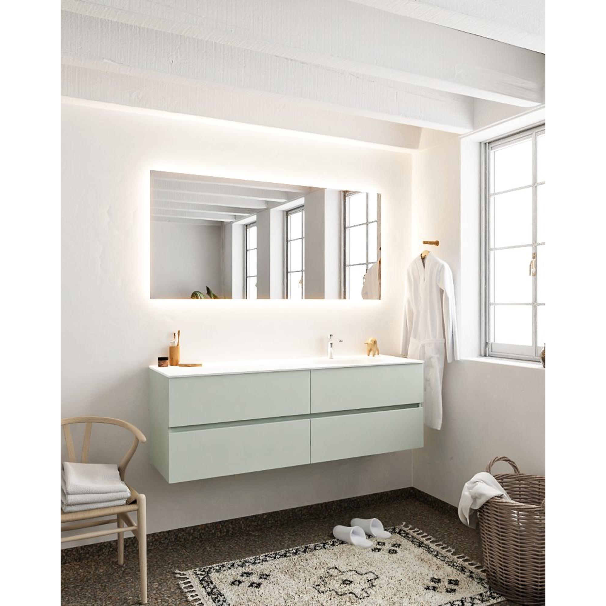 MONDIAZ VICA Badkamermeubelset - 150cm- onderkast greey - 4 lades - wastafel moon rechts - 1 kraangat - XL versie 60cm hoog