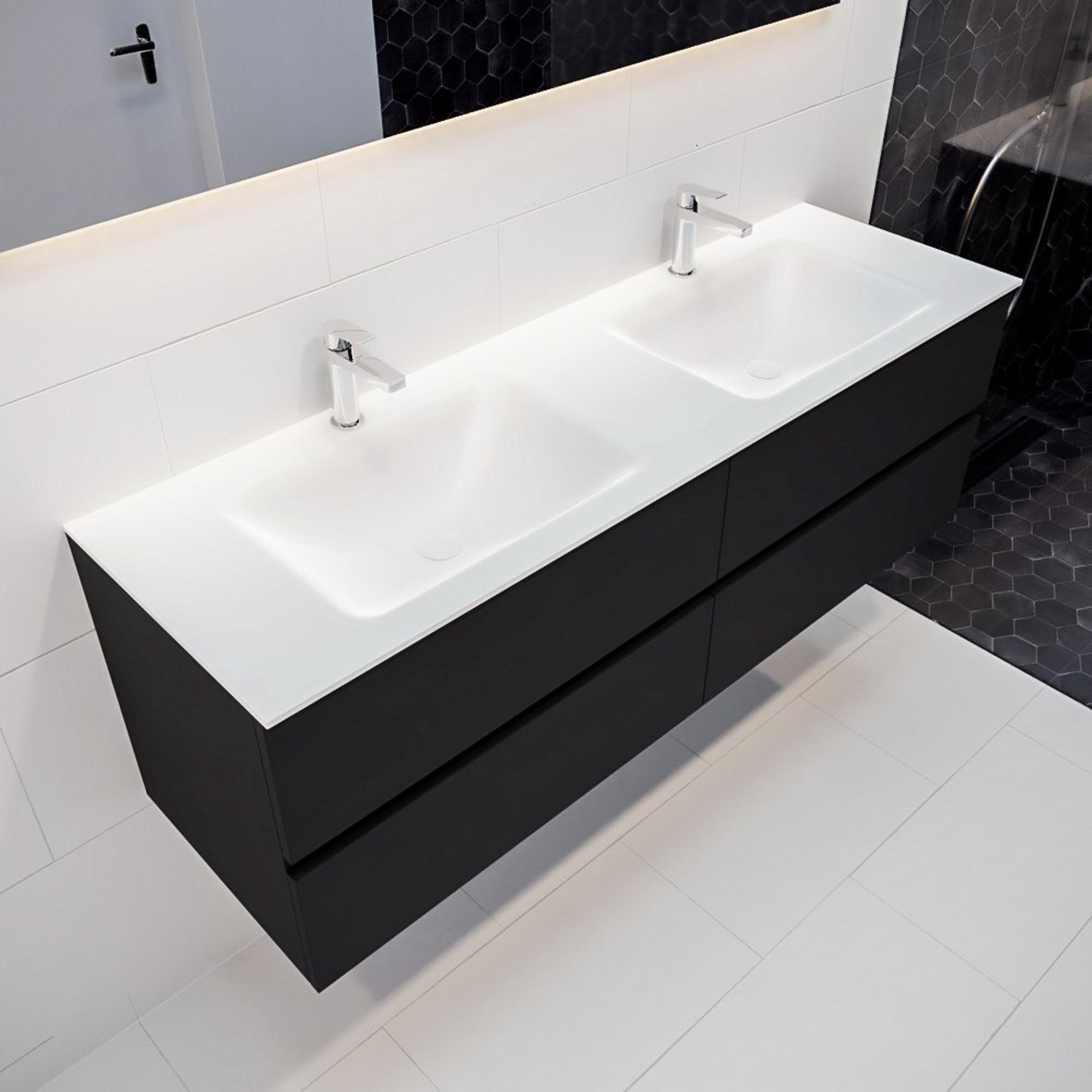 MONDIAZ VICA Badkamermeubelset - 150cm- onderkast urban - 4 lades - wastafel cloud dubbel - 2 kraangaten XL versie 60cm hoog