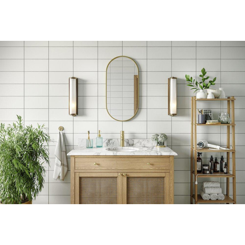 Stijlvolle afwerkingDe subtiele, geborstelde gouden rand van deze spiegel biedt een stijlvolle en tijdloze afwerking die perfect samengaat met diverse badkamerstijlen. Dankzij het ovale ontwerp creëer je een zachtere, verfijnde look in je interieur.