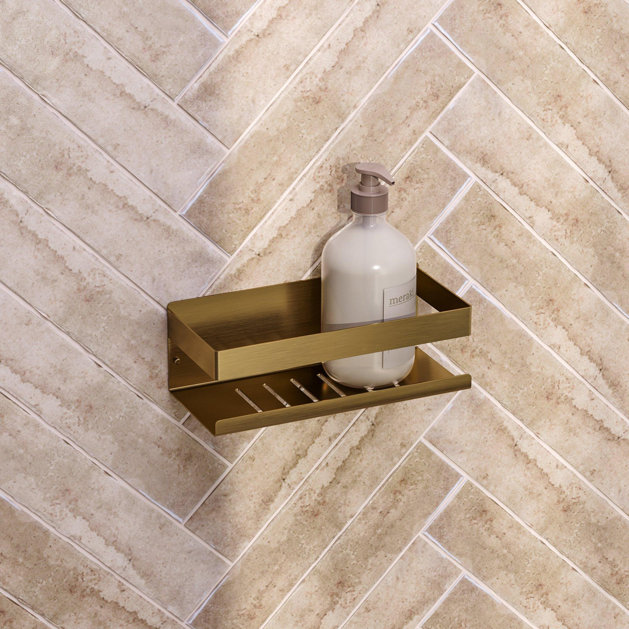 Het Brauer doucherek in de afmetingen 23x8cm, uitgevoerd in een elegante goud geborstelde afwerking, is een ware eyecatcher voor jouw badkamer. Dit stijlvolle rek combineert functionaliteit met een luxe uitstraling, waardoor het niet alleen handig is voor het opbergen van je douchespullen, maar ook een vleugje elegantie toevoegt aan de ruimte.