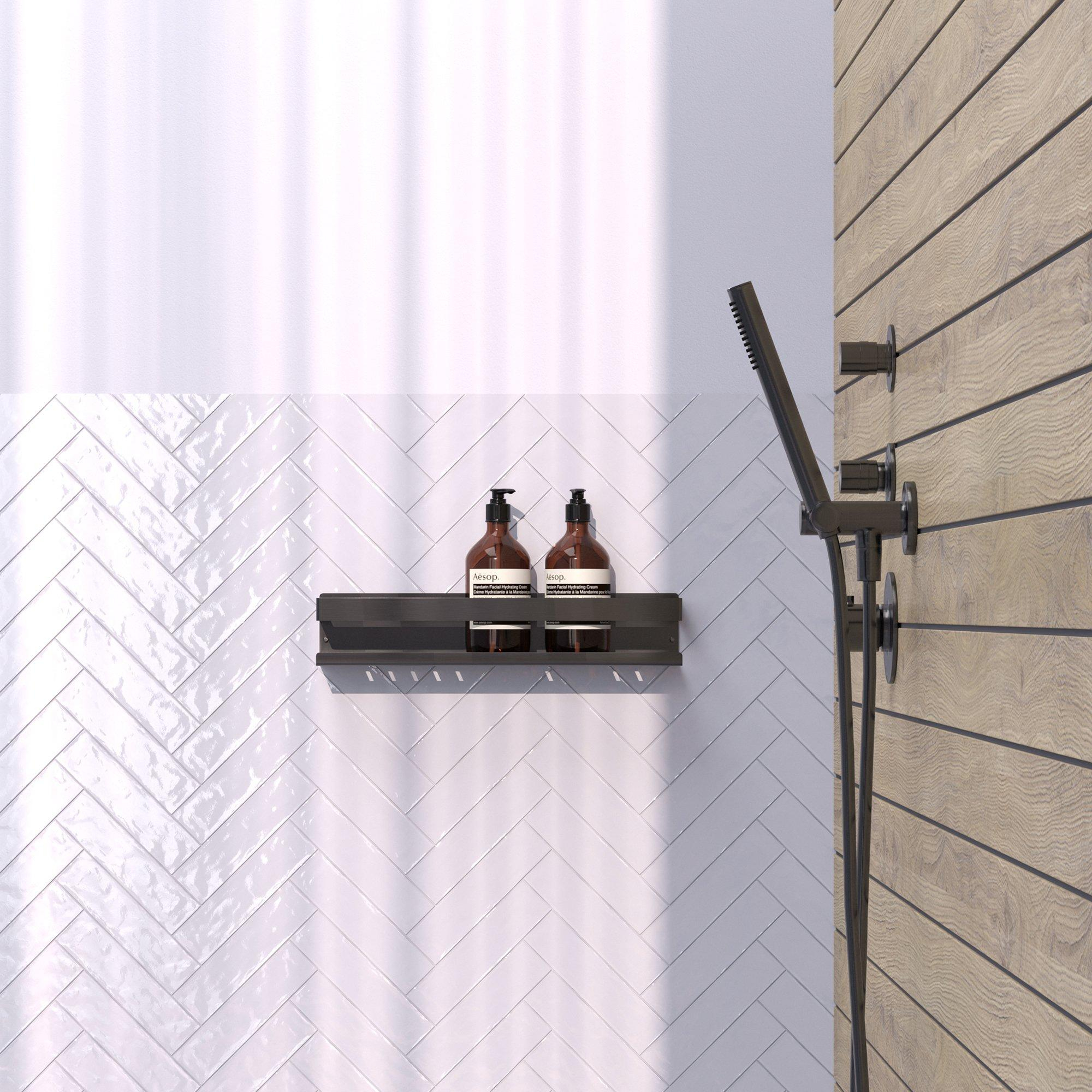 Het Brauer doucherek is veelzijdig in gebruik en past perfect in zowel kleine als grote badkamers. Of je nu een compacte doucheruimte hebt of een ruime badkamer, dit rek past zich moeiteloos aan. De gunmetal geborstelde afwerking geeft een tijdloze uitstraling die gemakkelijk te combineren is met verschillende interieurstijlen. Het is een praktisch en elegant accessoire dat jouw badkamer compleet maakt.