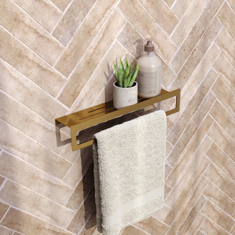 Naast zijn esthetische waarde is dit handdoekrek ook zeer functioneel. Met een lengte van 43cm biedt het voldoende ruimte voor meerdere handdoeken, waardoor je badkamer netjes en georganiseerd blijft. De stevige constructie zorgt ervoor dat het rek lang meegaat en bestand is tegen dagelijks gebruik. De gouden geborstelde afwerking is niet alleen mooi om te zien, maar ook duurzaam en gemakkelijk schoon te maken.