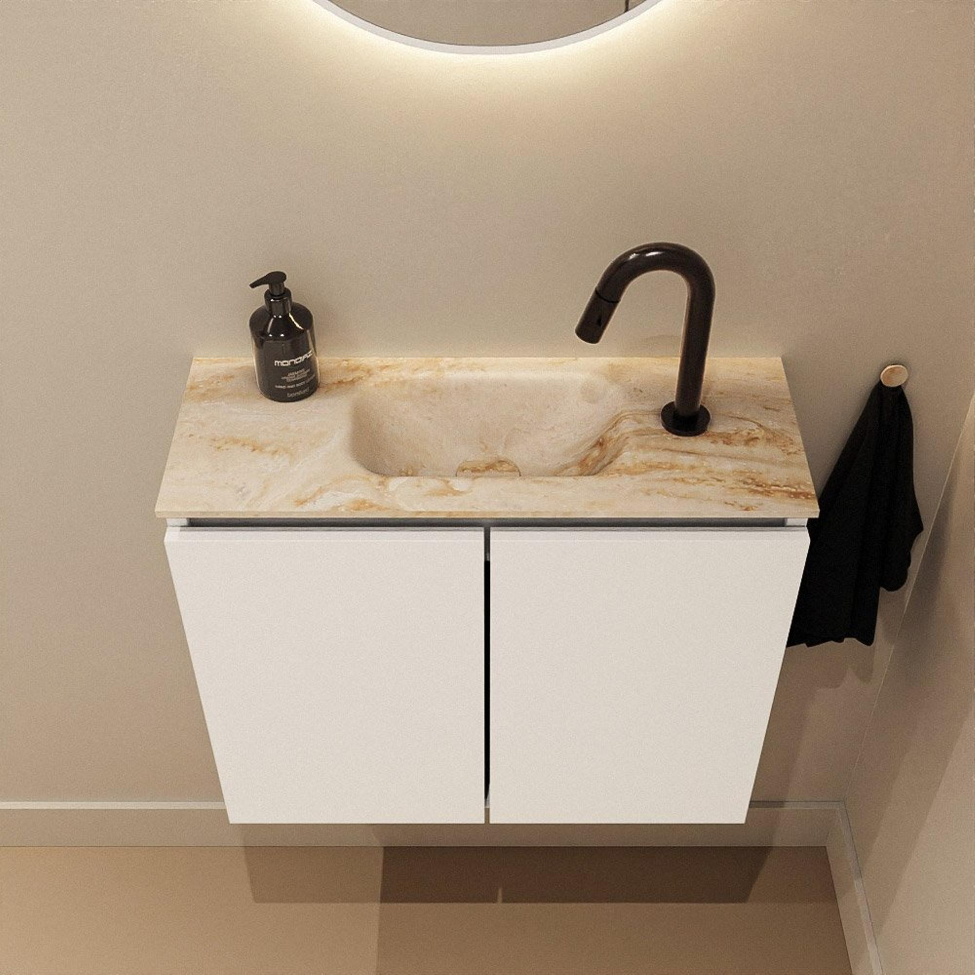 MONDIAZ TURE-DLUX 60cm toiletmeubel Talc. EDEN wastafel Frappe positie midden. Met 1 kraangat.