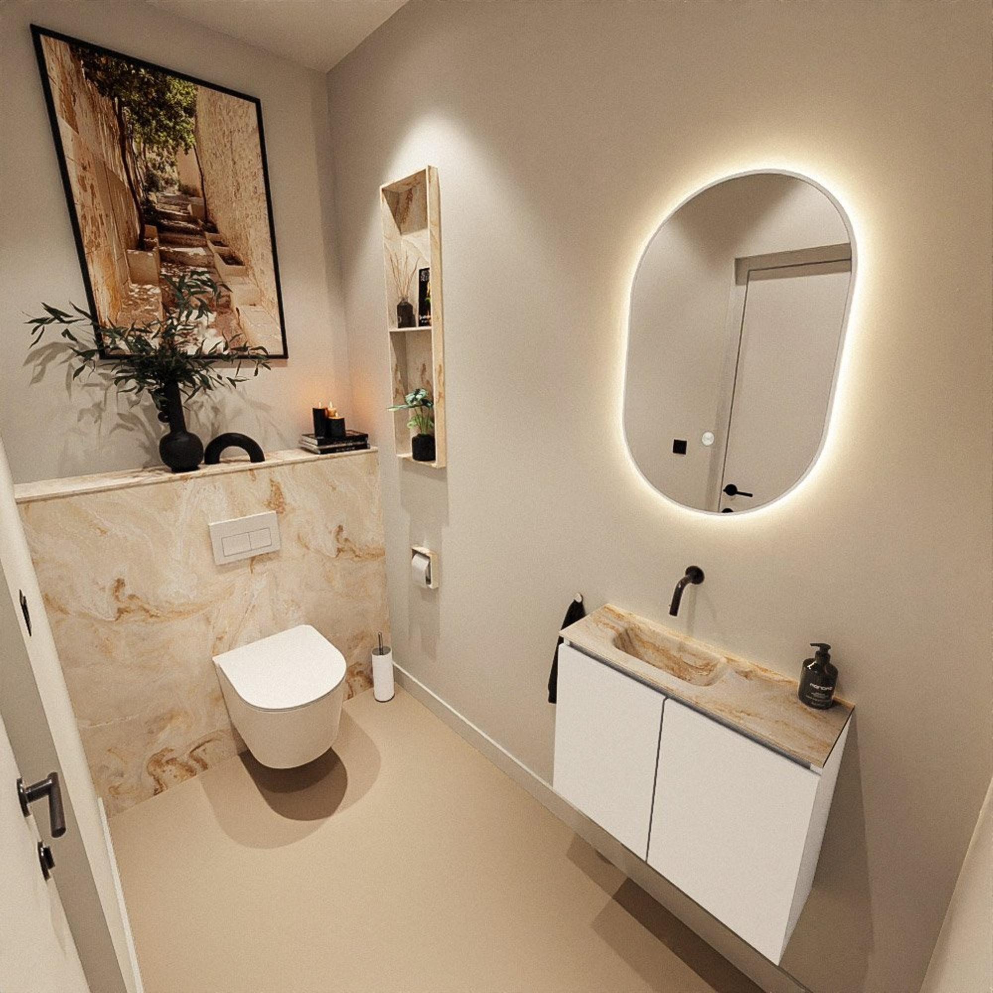 MONDIAZ TURE-DLUX 60cm toiletmeubel Talc. EDEN wastafel Frappe positie links. Zonder kraangat.