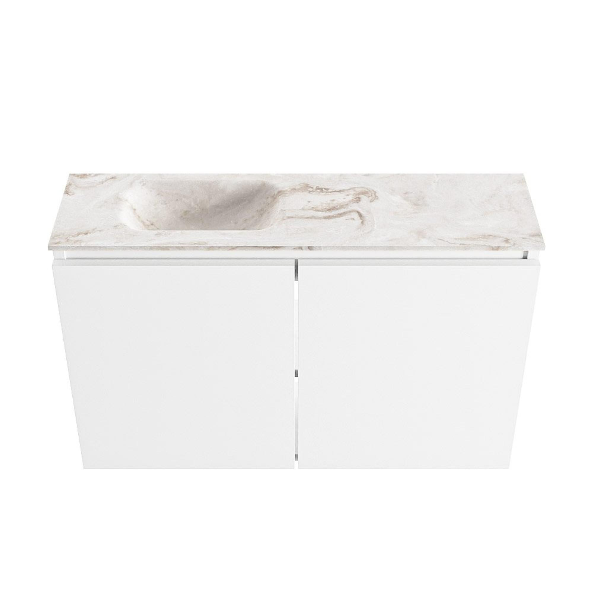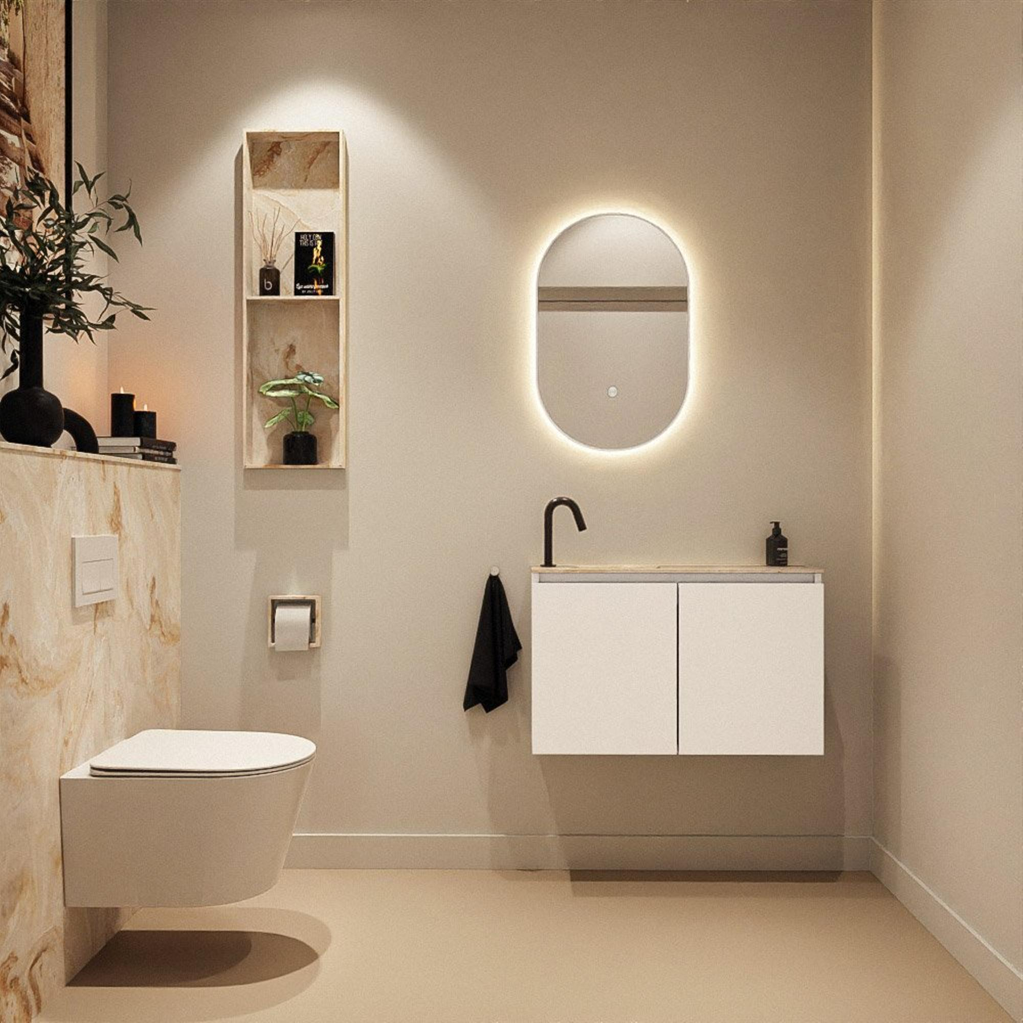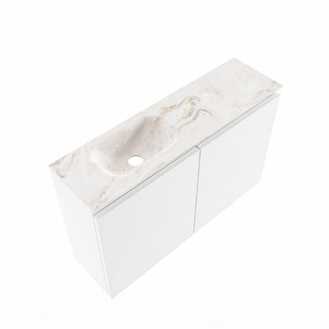 MONDIAZ TURE-DLUX 80cm toiletmeubel Talc. EDEN wastafel Frappe positie links. Met 1 kraangat.