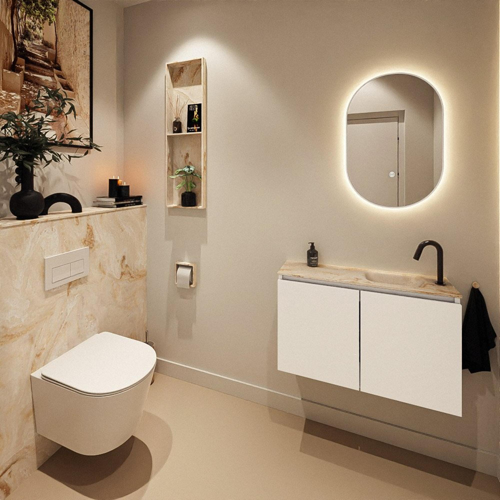 MONDIAZ TURE-DLUX 80cm toiletmeubel Talc. EDEN wastafel Frappe positie rechts. Met 1 kraangat.
