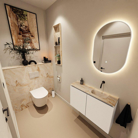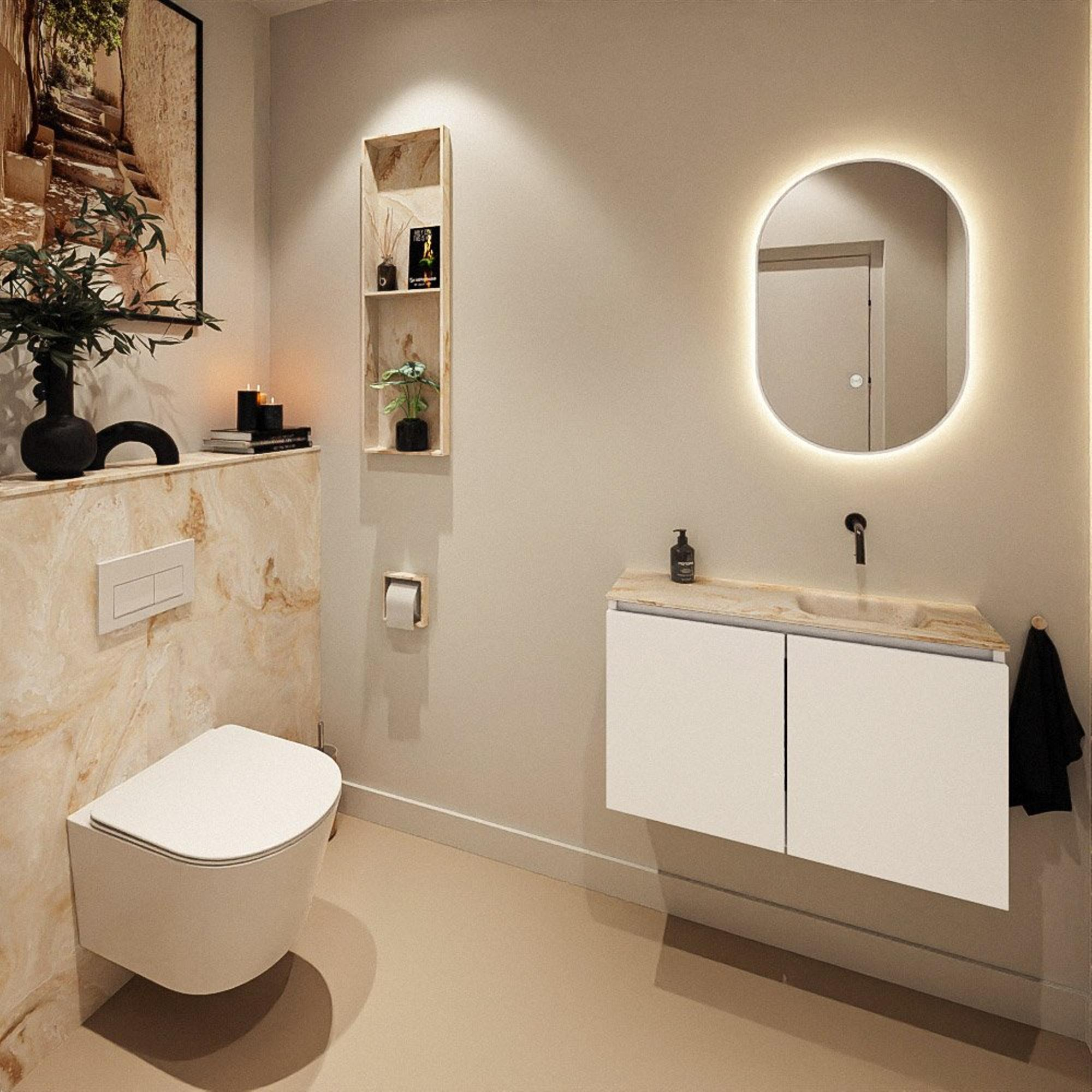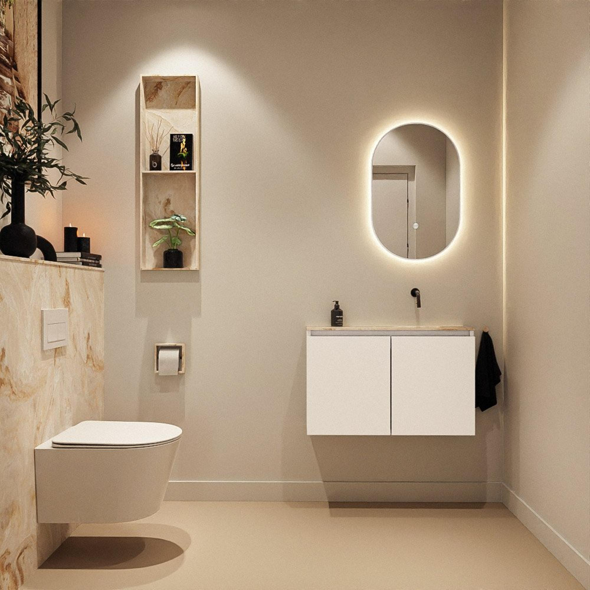 MONDIAZ TURE-DLUX 80cm toiletmeubel Talc. EDEN wastafel Frappe positie rechts. Zonder kraangat.