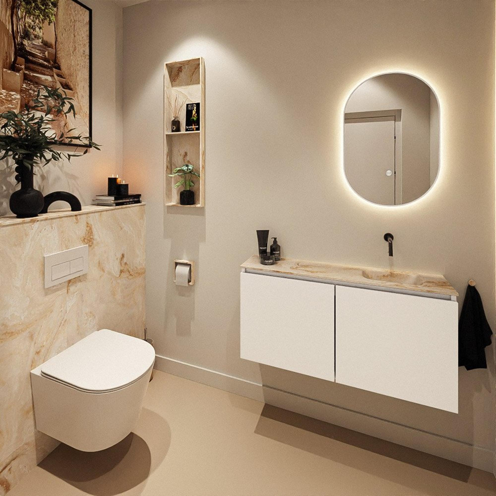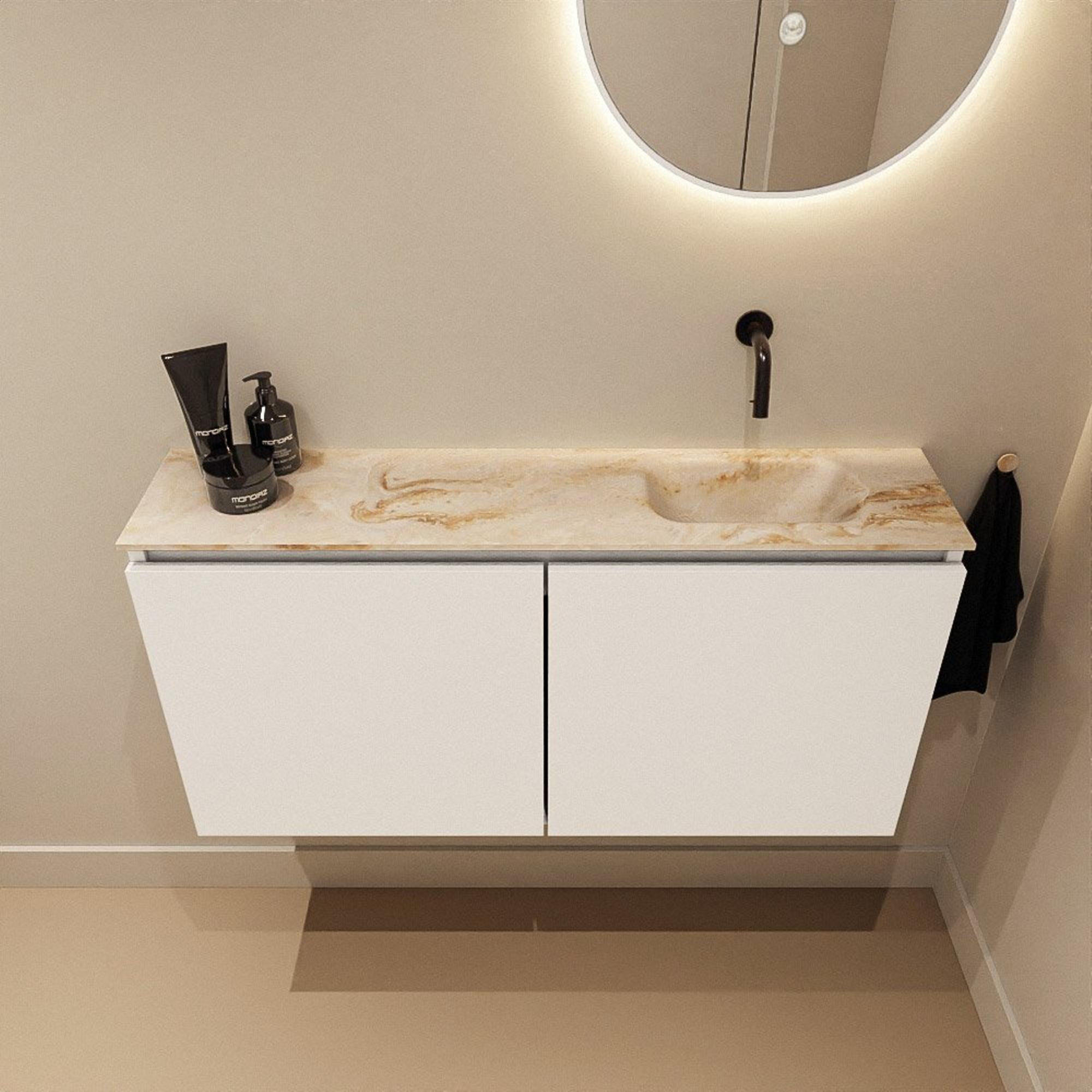 MONDIAZ TURE-DLUX 100cm toiletmeubel Talc. EDEN wastafel Frappe positie rechts. Zonder kraangat.