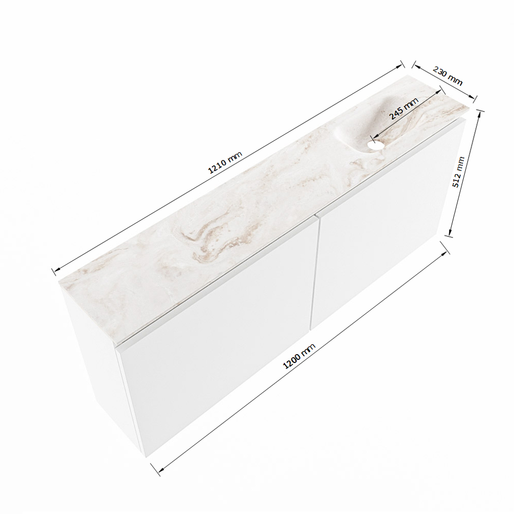 MONDIAZ TURE-DLUX 120cm toiletmeubel Talc. EDEN wastafel Frappe positie rechts. Met 1 kraangat.