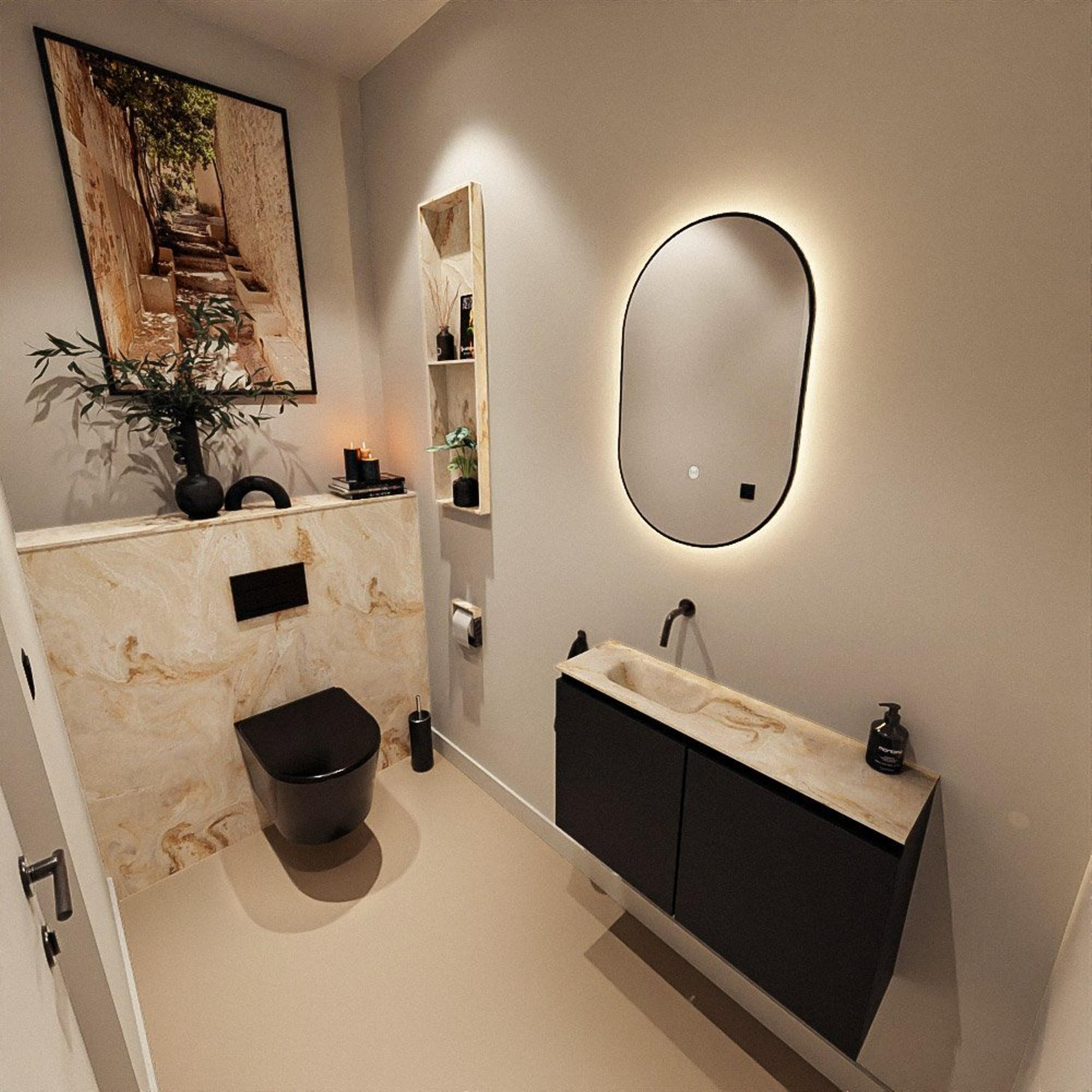 MONDIAZ TURE-DLUX 80cm toiletmeubel Urban. EDEN wastafel Frappe positie links. Zonder kraangat.