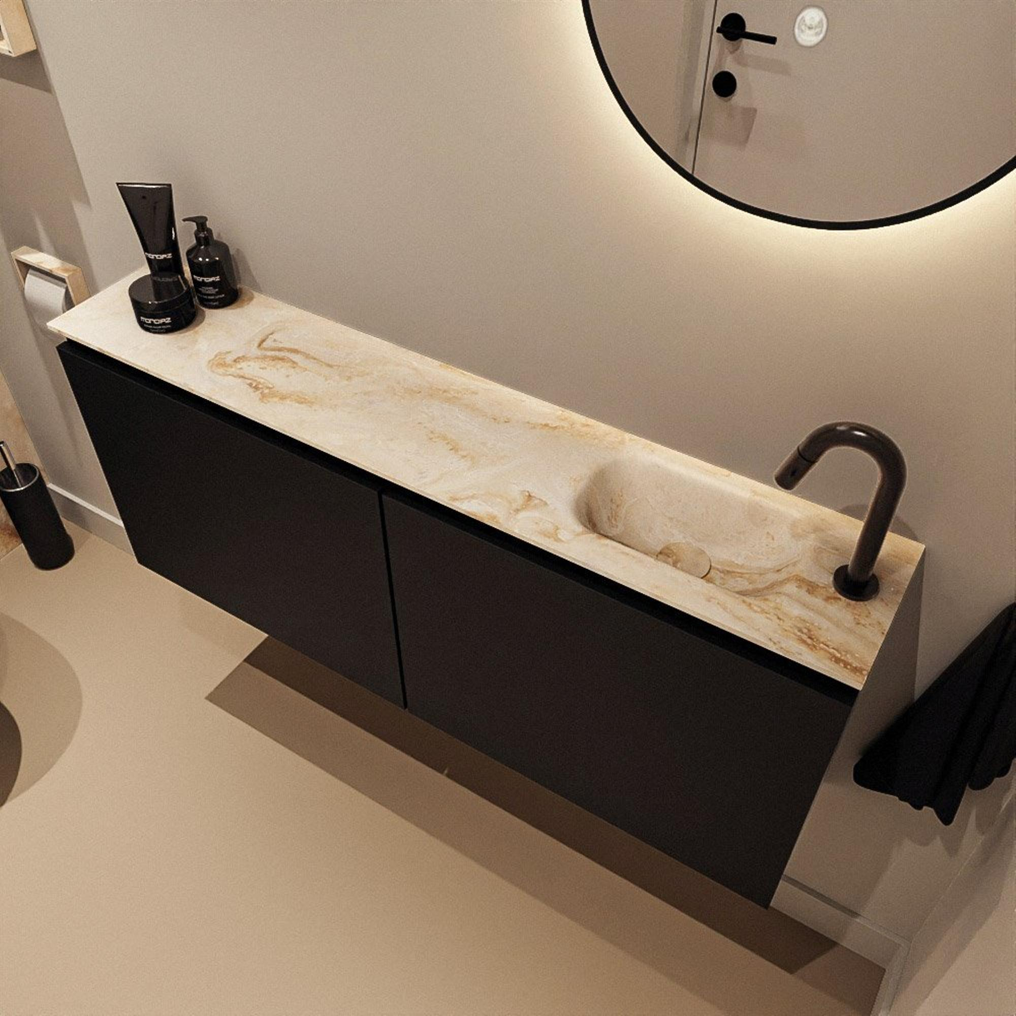 MONDIAZ TURE-DLUX 120cm toiletmeubel Urban. EDEN wastafel Frappe positie rechts. Met 1 kraangat.