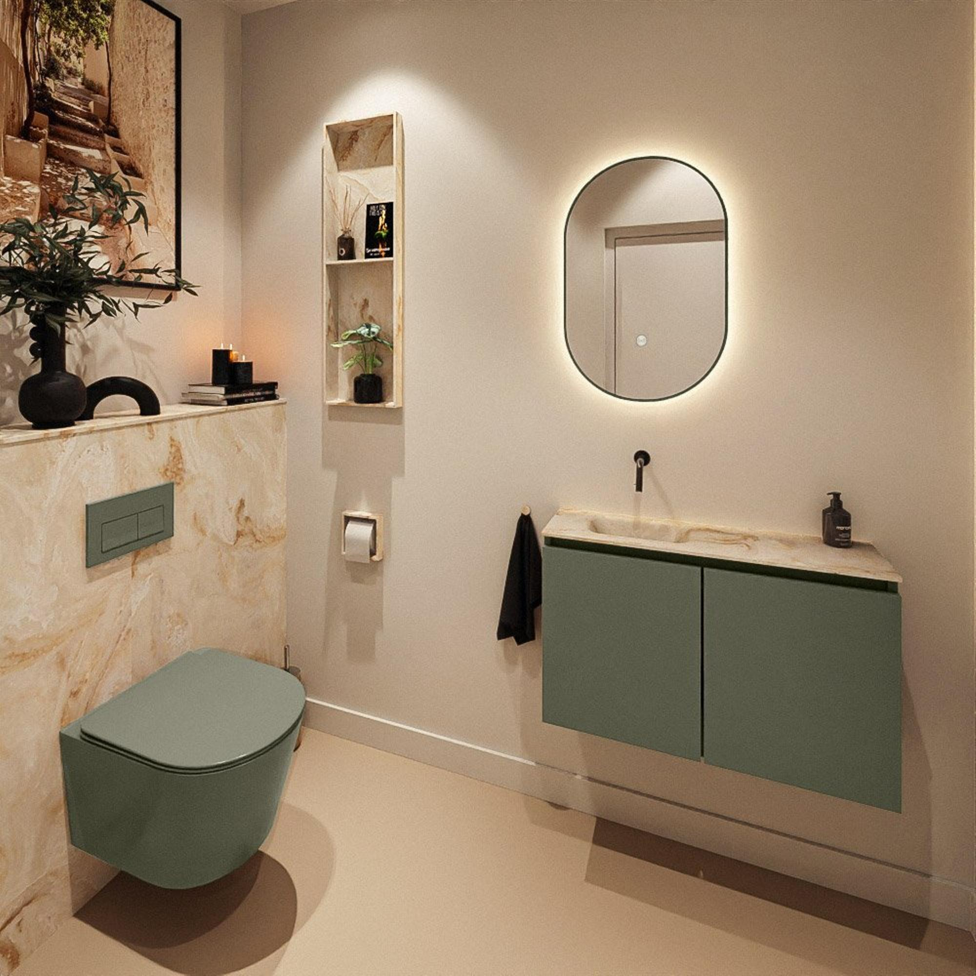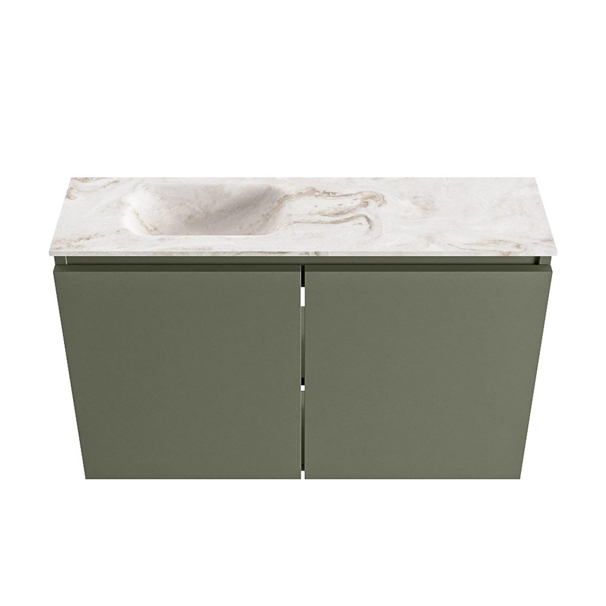 MONDIAZ TURE-DLUX 80cm toiletmeubel Army. EDEN wastafel Frappe positie links. Zonder kraangat.