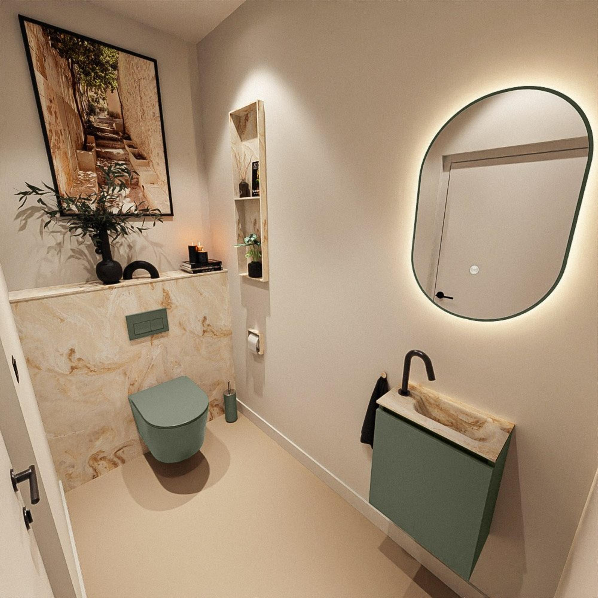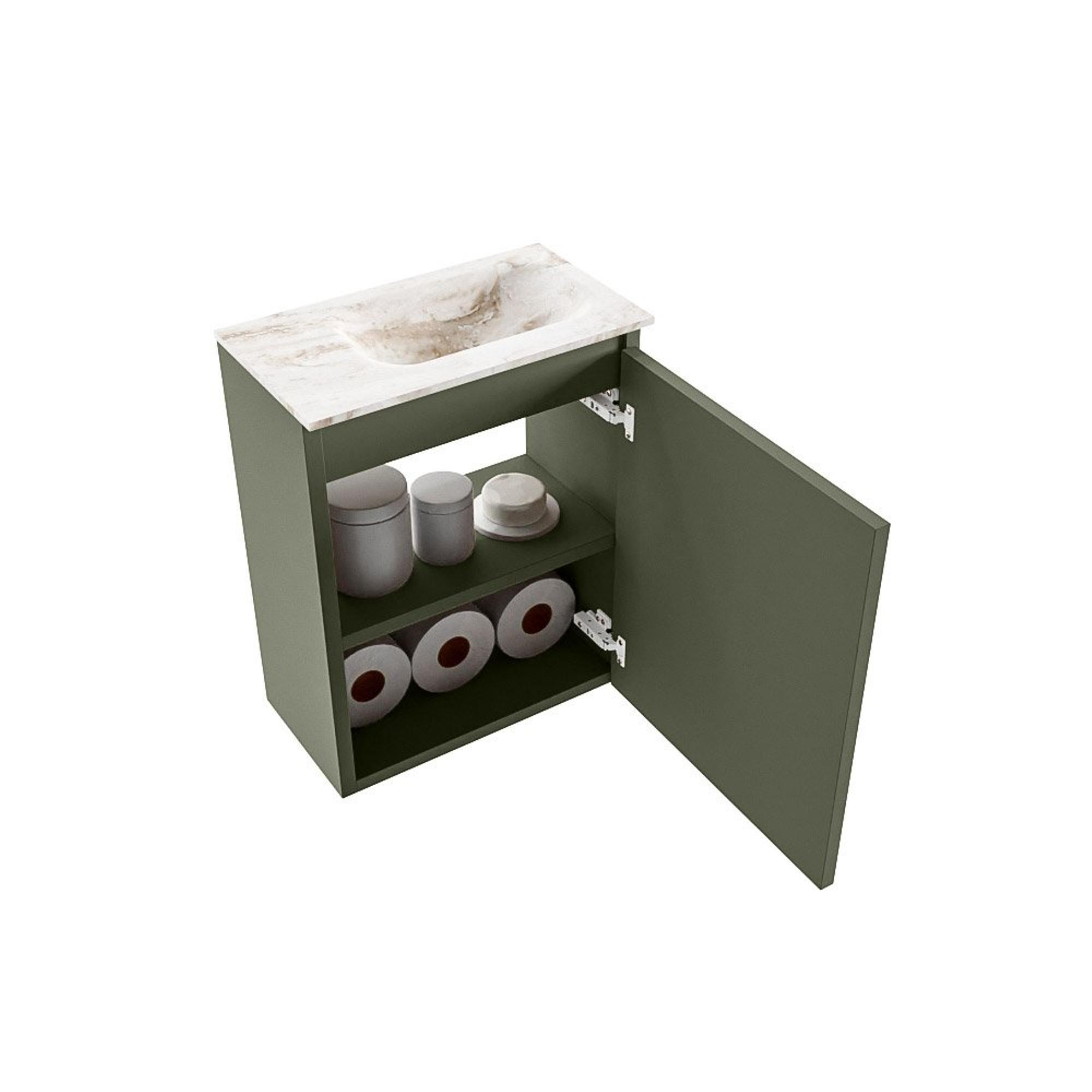 MONDIAZ TURE-DLUX 40cm toiletmeubel Army. EDEN wastafel Frappe positie rechts. Met 1 kraangat.