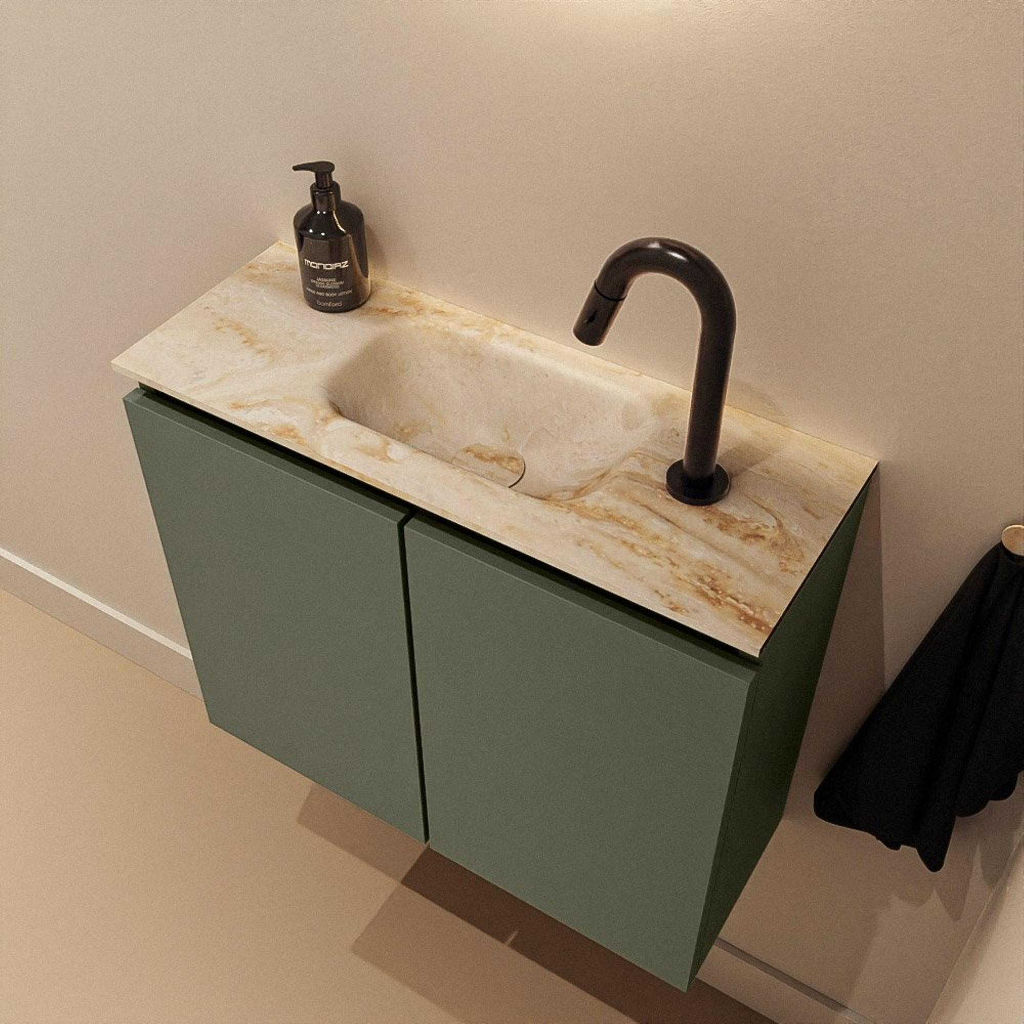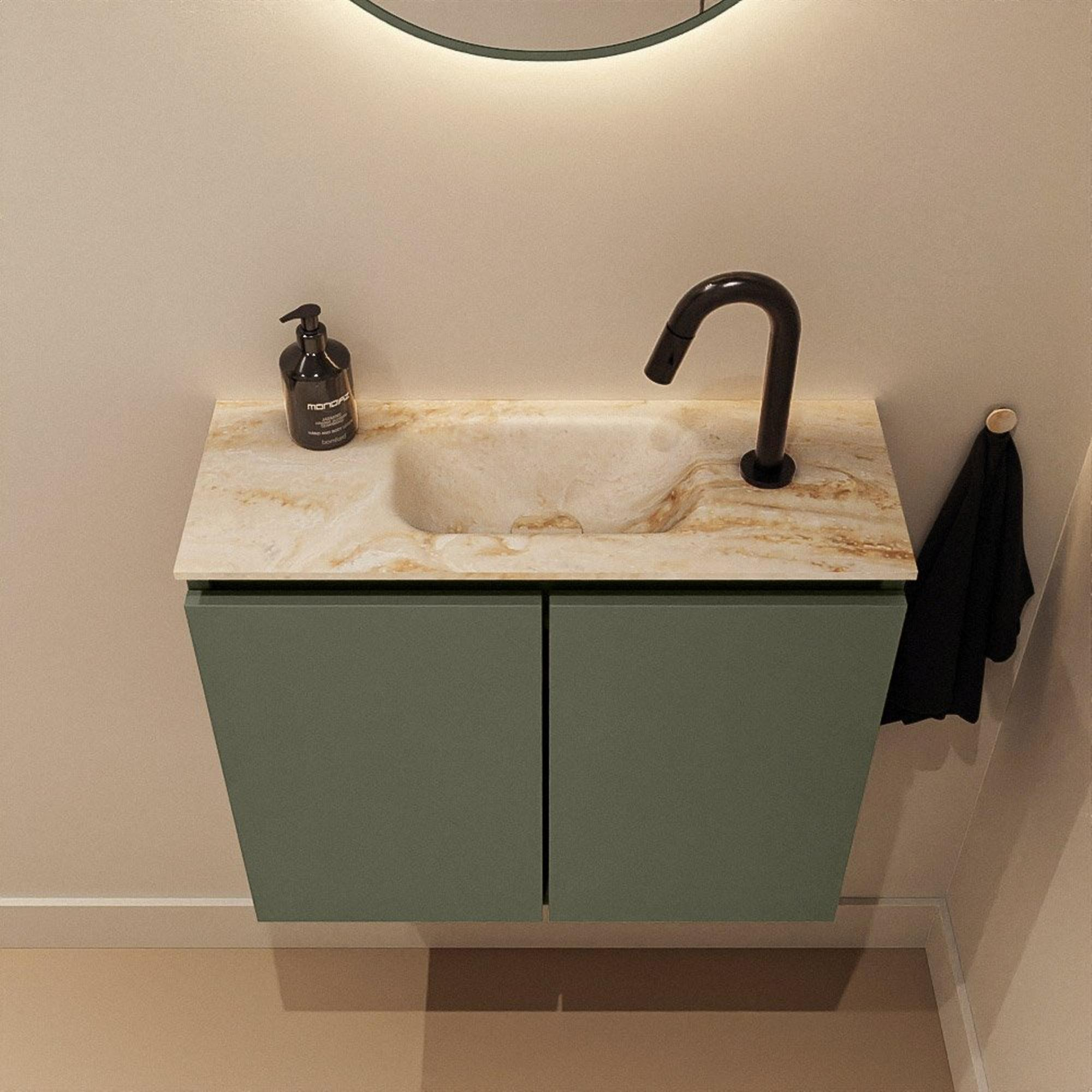 MONDIAZ TURE-DLUX 60cm toiletmeubel Army. EDEN wastafel Frappe positie midden. Met 1 kraangat.