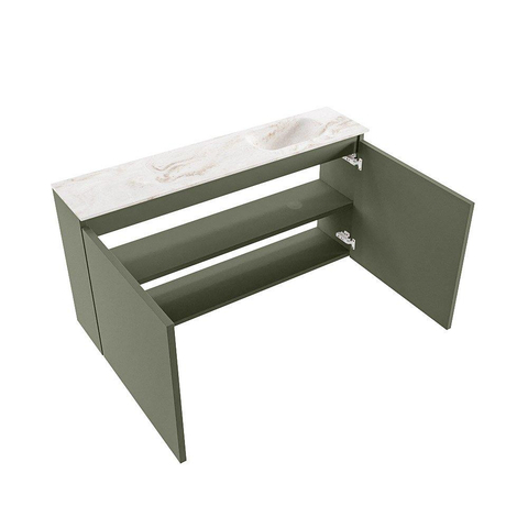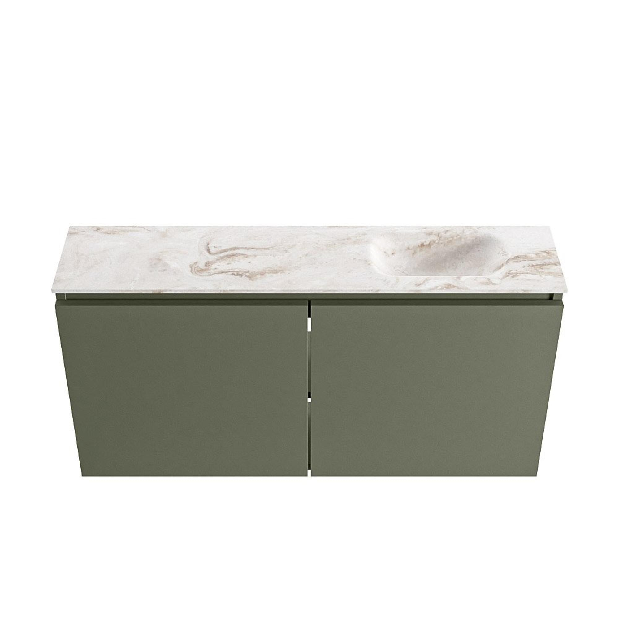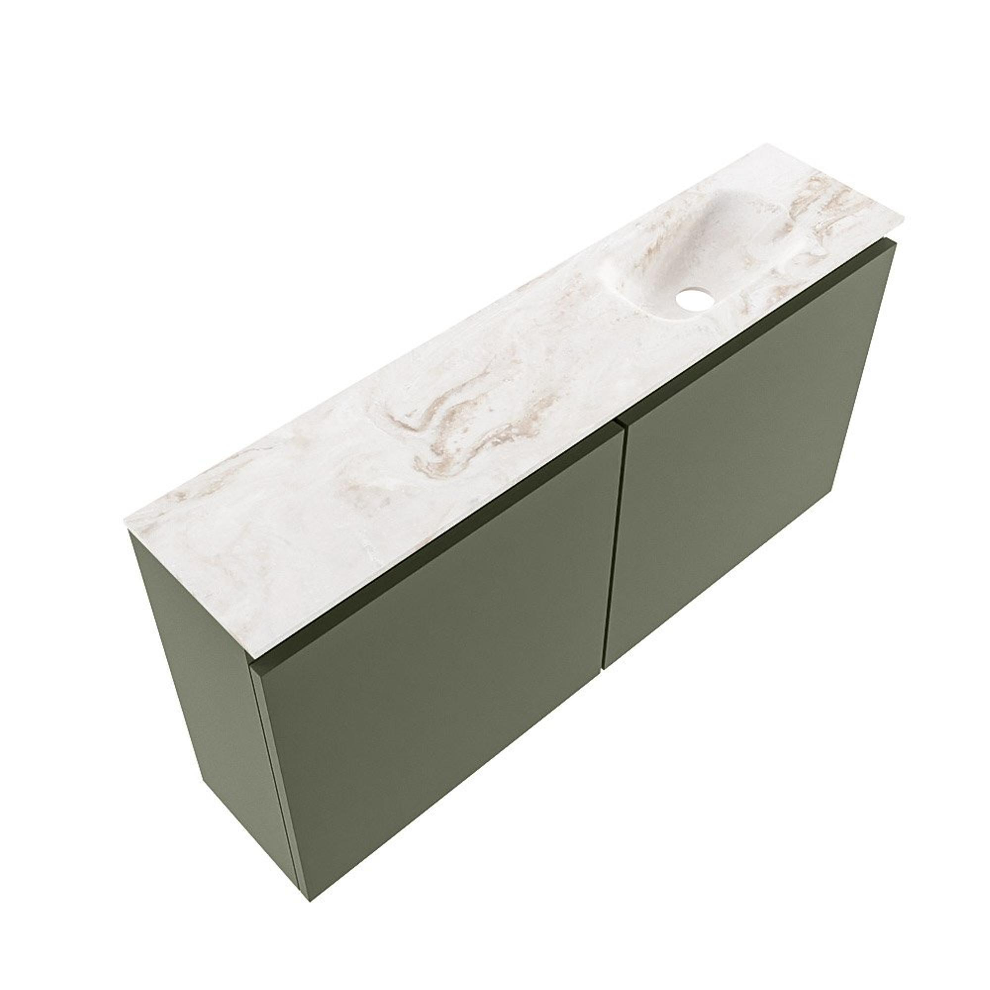MONDIAZ TURE-DLUX 100cm toiletmeubel Army. EDEN wastafel Frappe positie rechts. Met 1 kraangat.