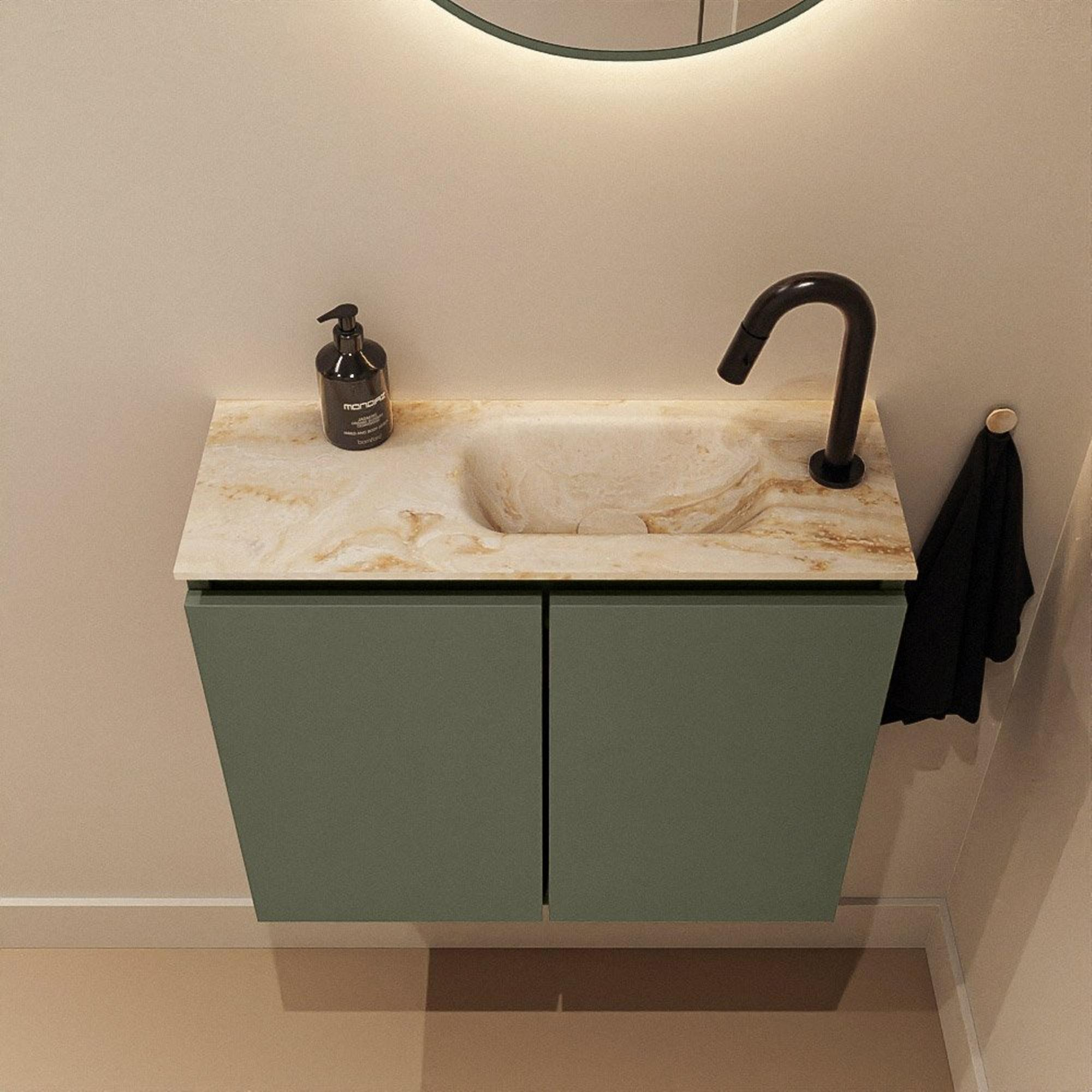 MONDIAZ TURE-DLUX 60cm toiletmeubel Army. EDEN wastafel Frappe positie rechts. Met 1 kraangat.