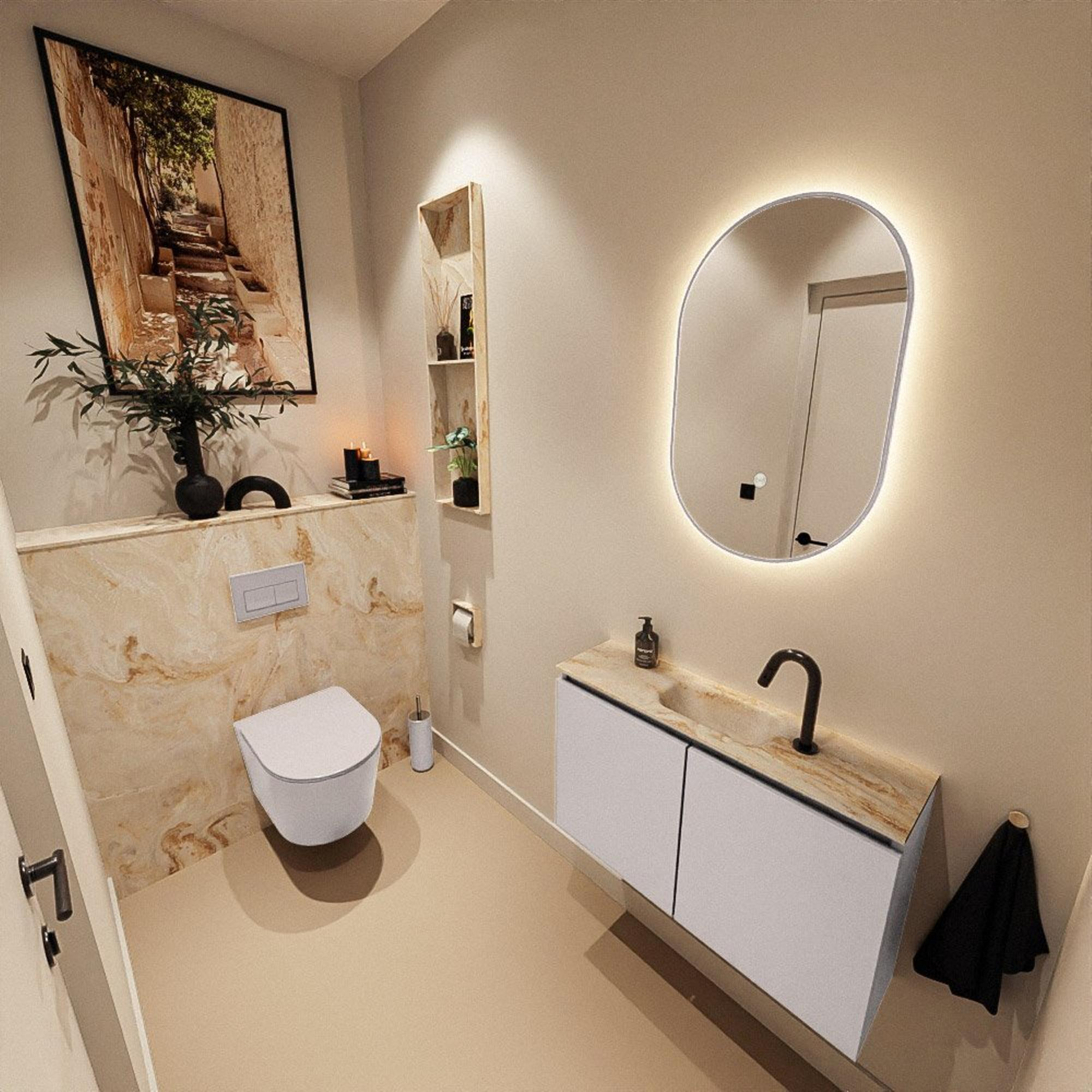 MONDIAZ TURE-DLUX 80cm toiletmeubel Cale. EDEN wastafel Frappe positie midden. Met 1 kraangat.