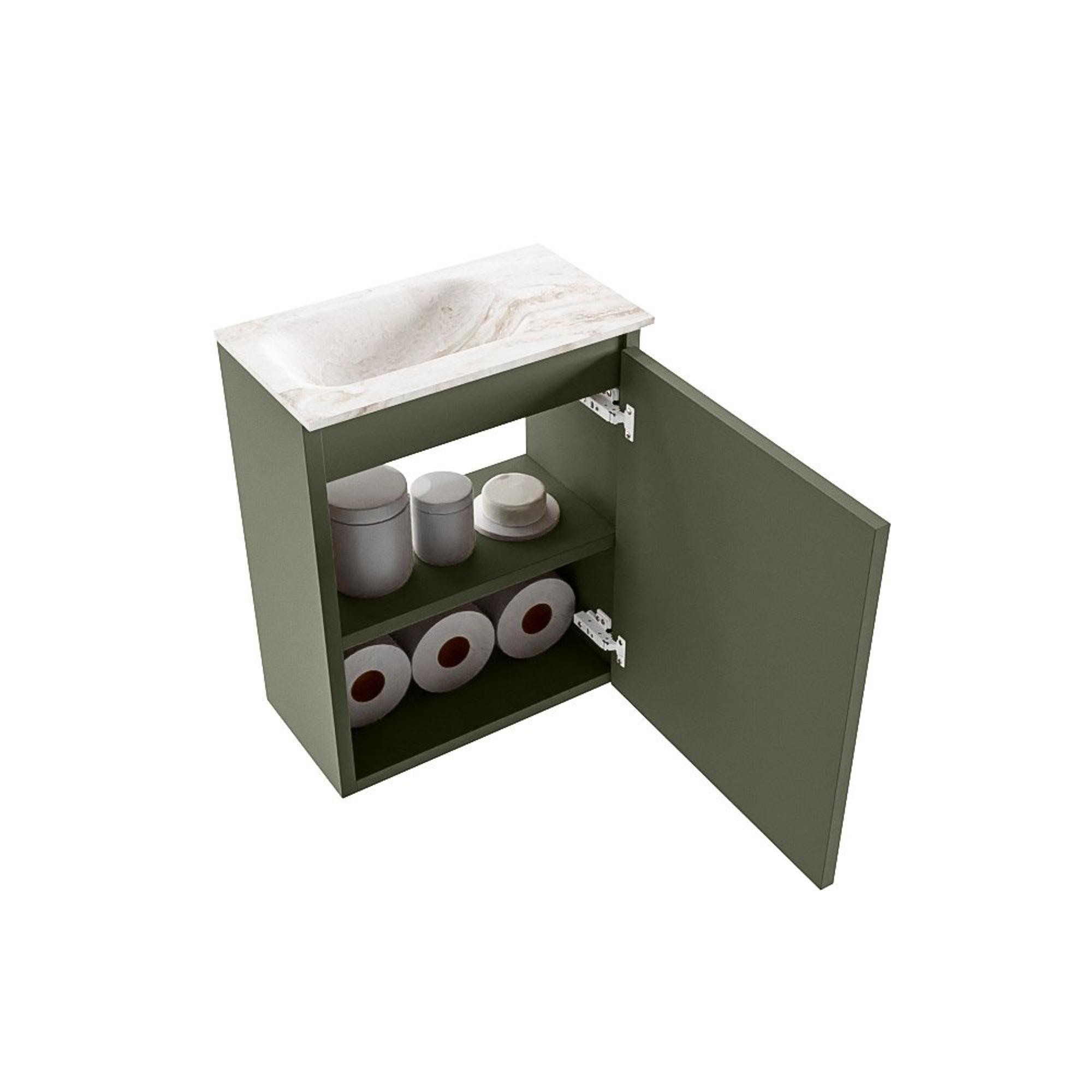 MONDIAZ TURE-DLUX 40cm toiletmeubel Army. EDEN wastafel Frappe positie links. Met 1 kraangat.