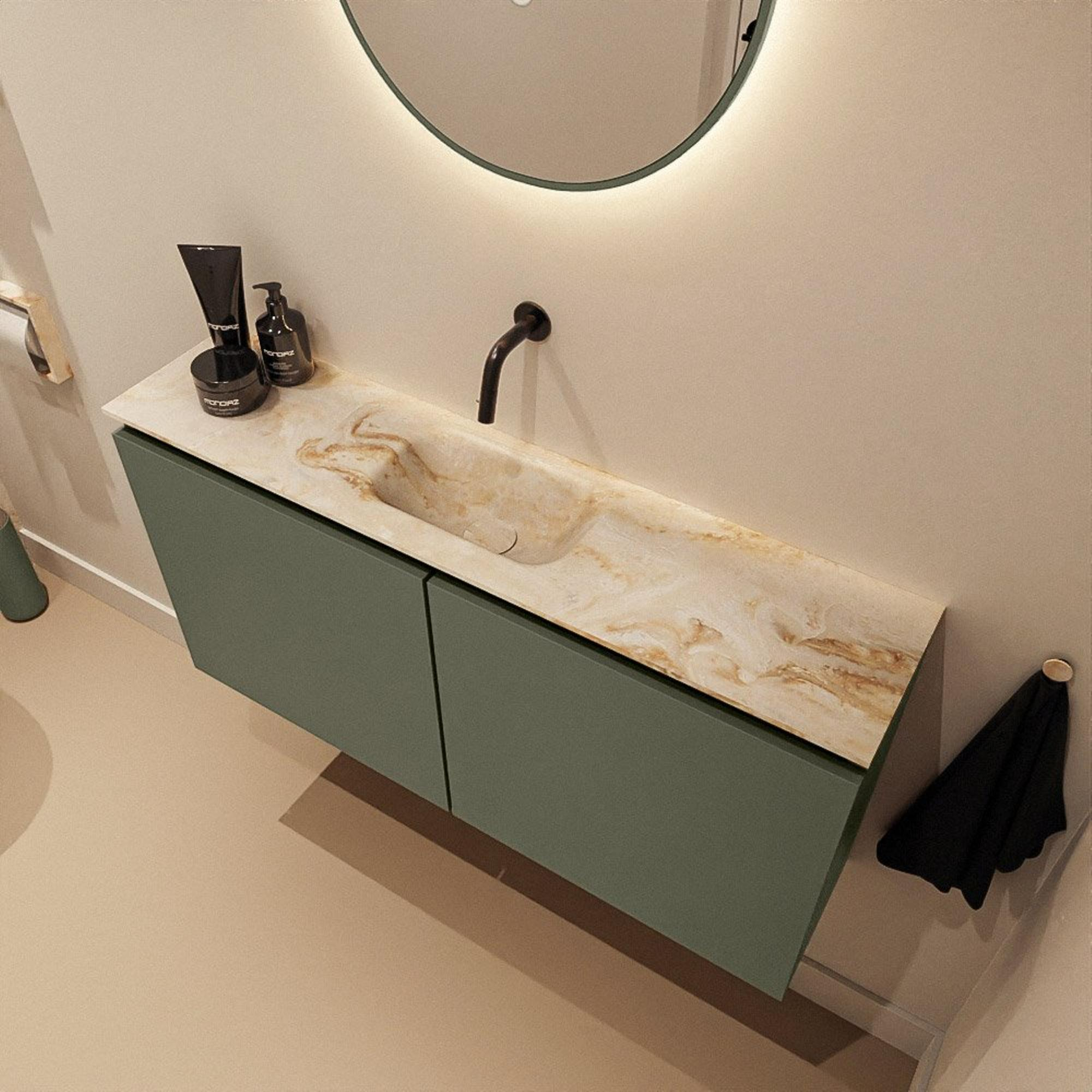 MONDIAZ TURE-DLUX 100cm toiletmeubel Army. EDEN wastafel Frappe positie midden. Zonder kraangat.