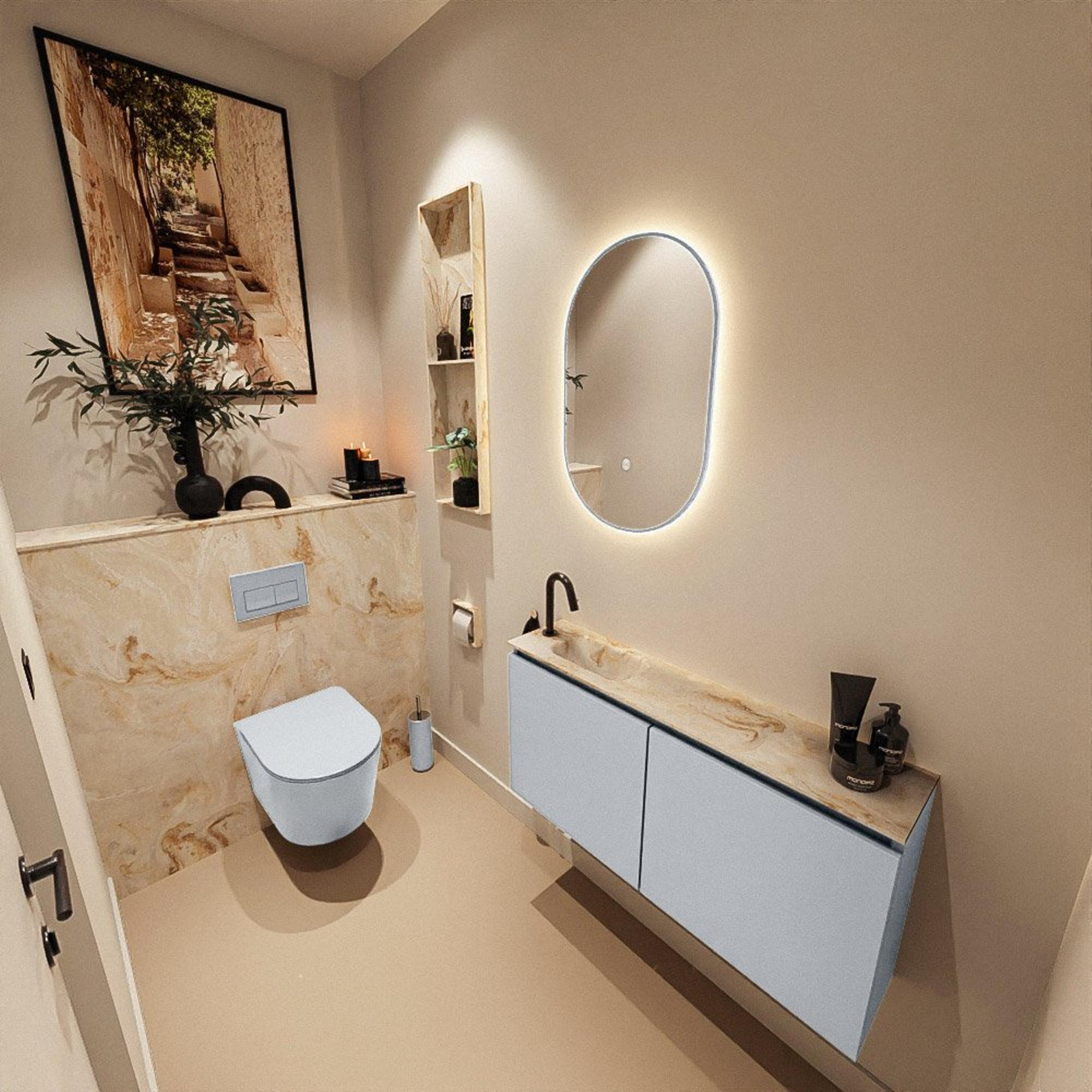 MONDIAZ TURE-DLUX 100cm toiletmeubel Clay. EDEN wastafel Frappe positie links. Met 1 kraangat.