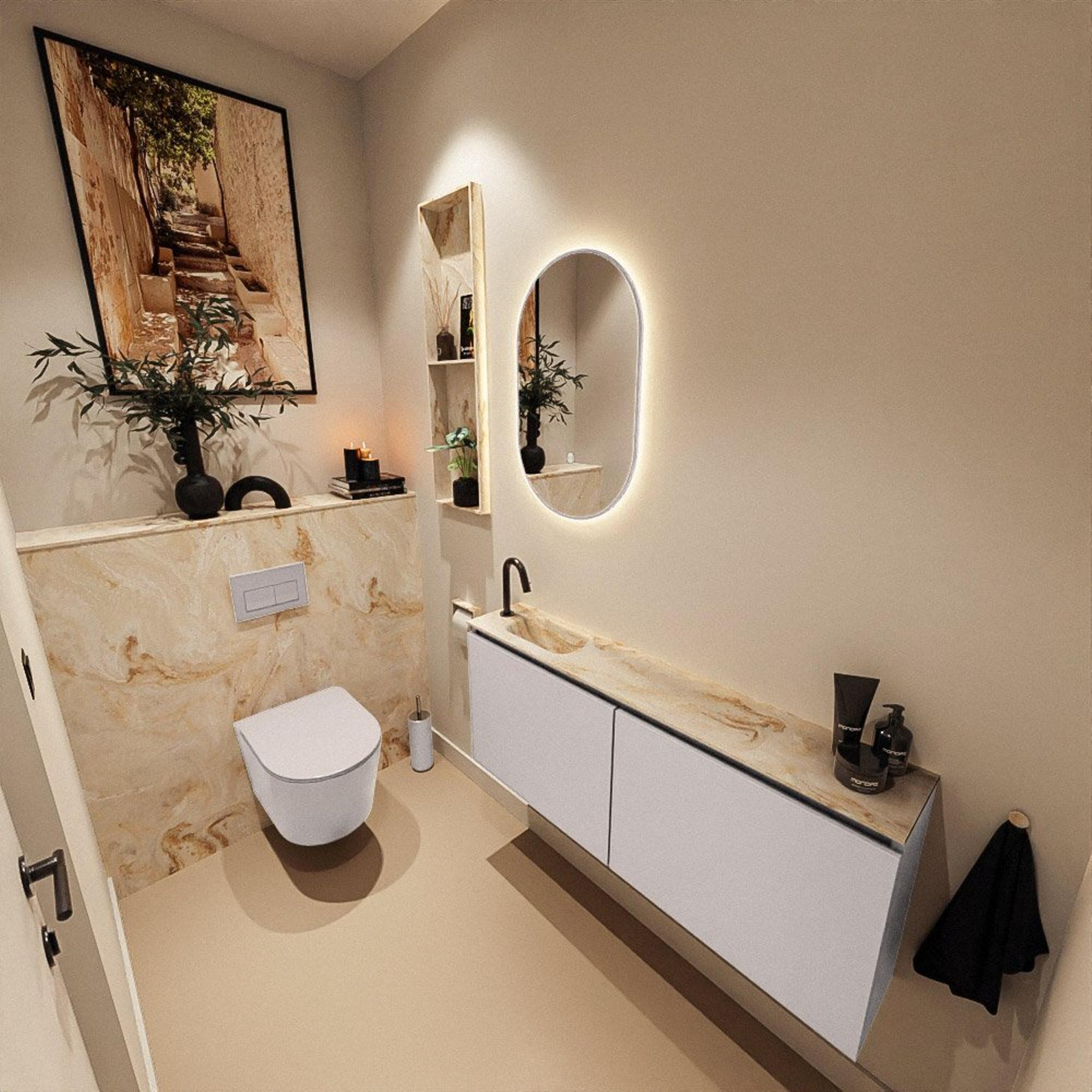 MONDIAZ TURE-DLUX 120cm toiletmeubel Cale. EDEN wastafel Frappe positie links. Met 1 kraangat.
