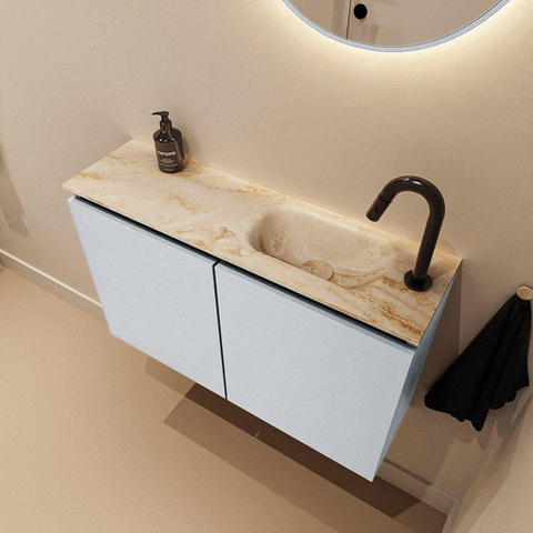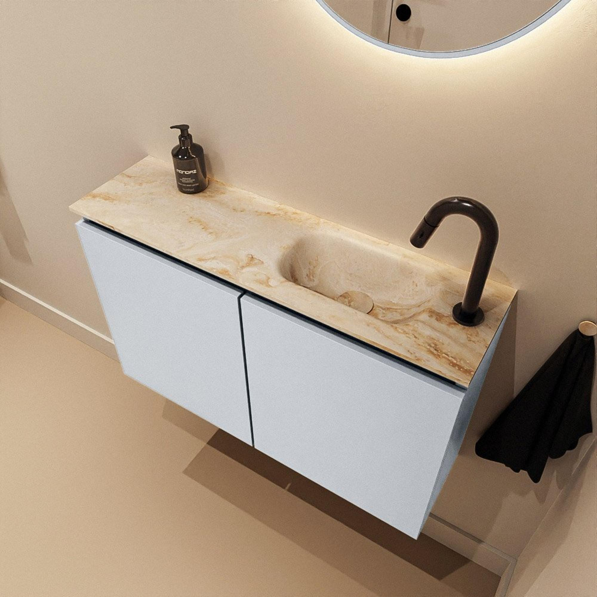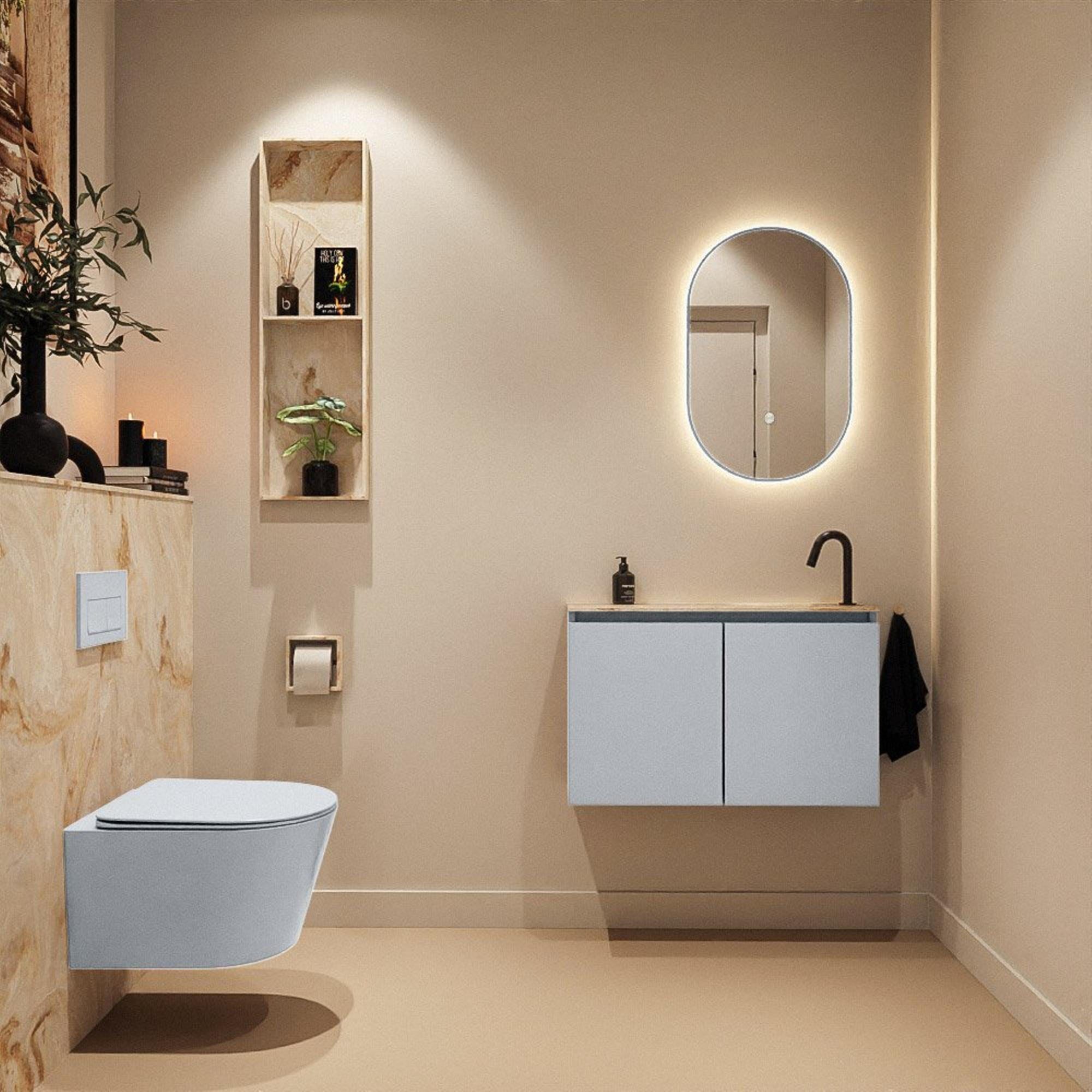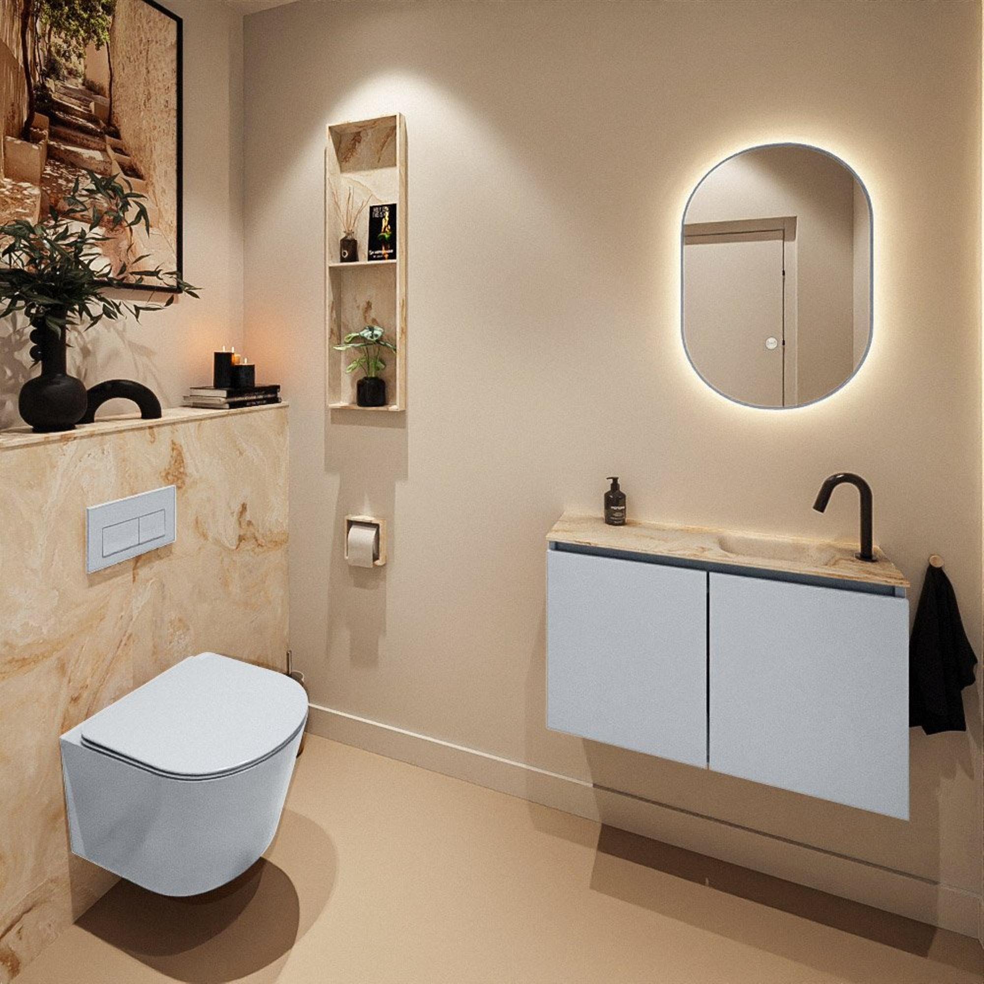 MONDIAZ TURE-DLUX 80cm toiletmeubel Clay. EDEN wastafel Frappe positie rechts. Met 1 kraangat.