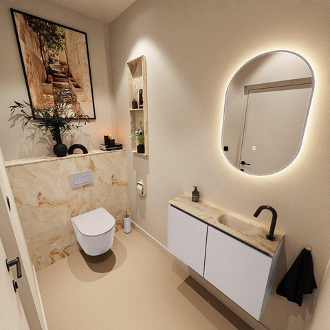 MONDIAZ TURE-DLUX 80cm toiletmeubel Cale. EDEN wastafel Frappe positie rechts. Met 1 kraangat.