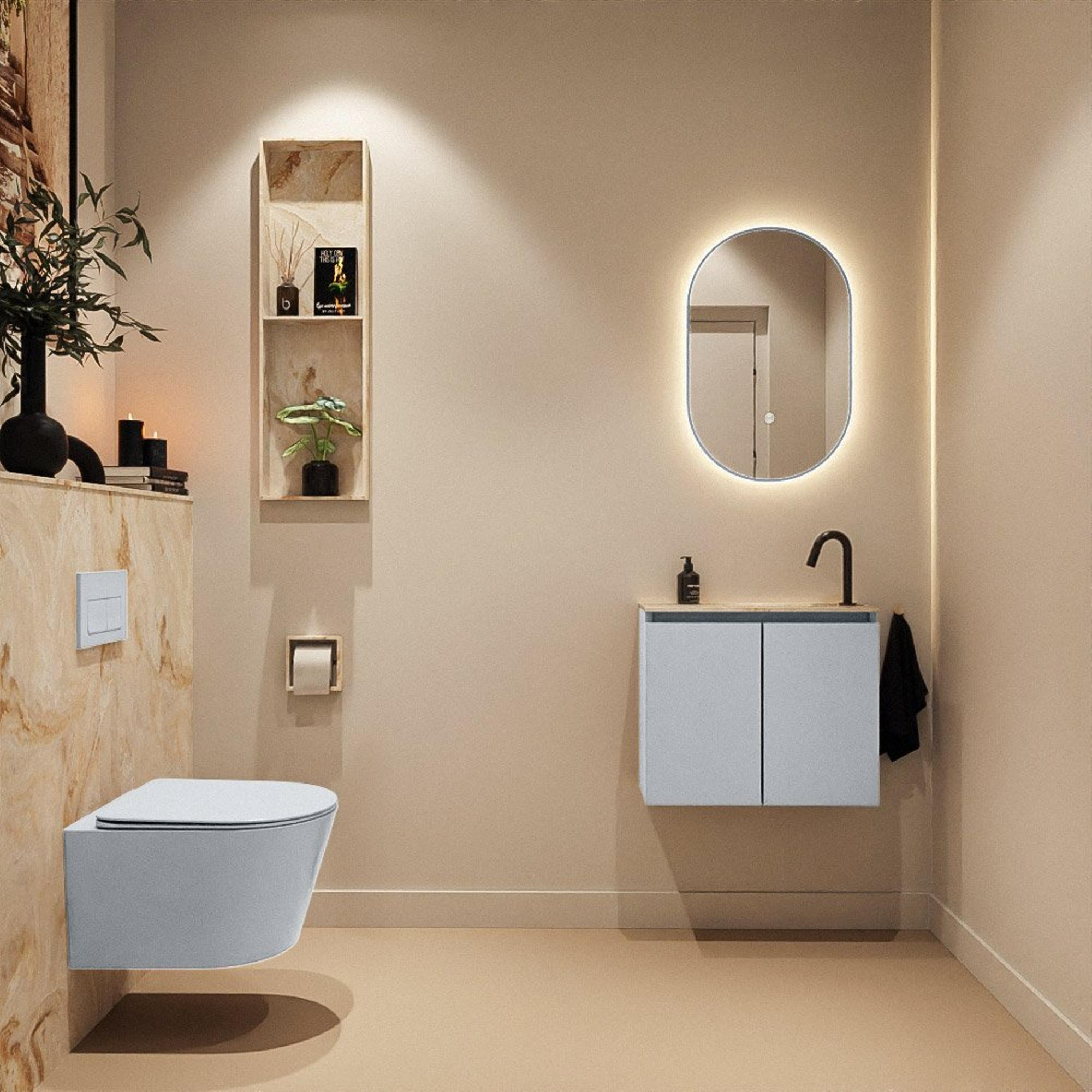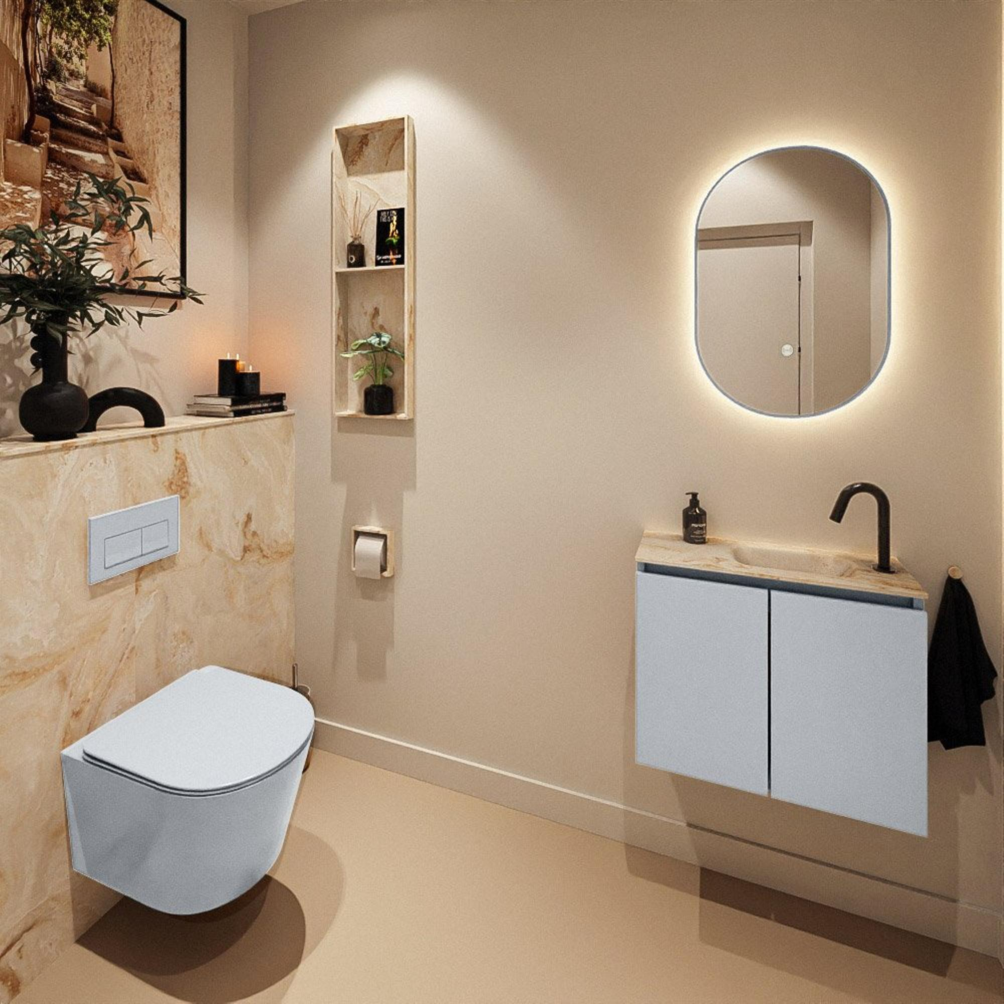 MONDIAZ TURE-DLUX 60cm toiletmeubel Clay. EDEN wastafel Frappe positie rechts. Met 1 kraangat.