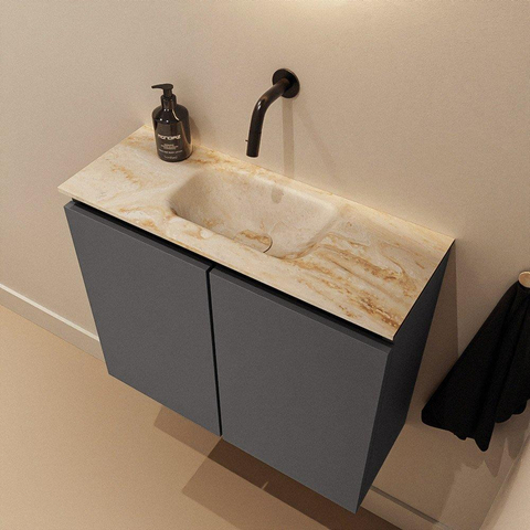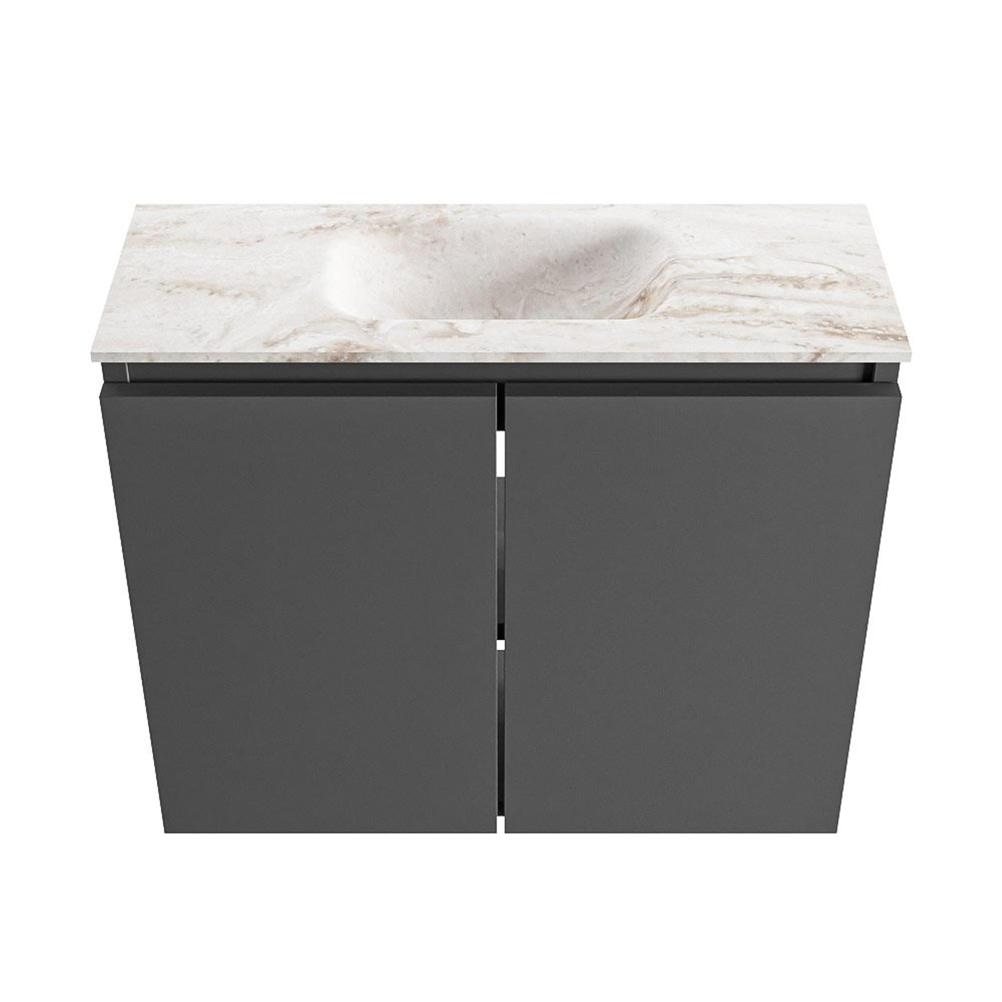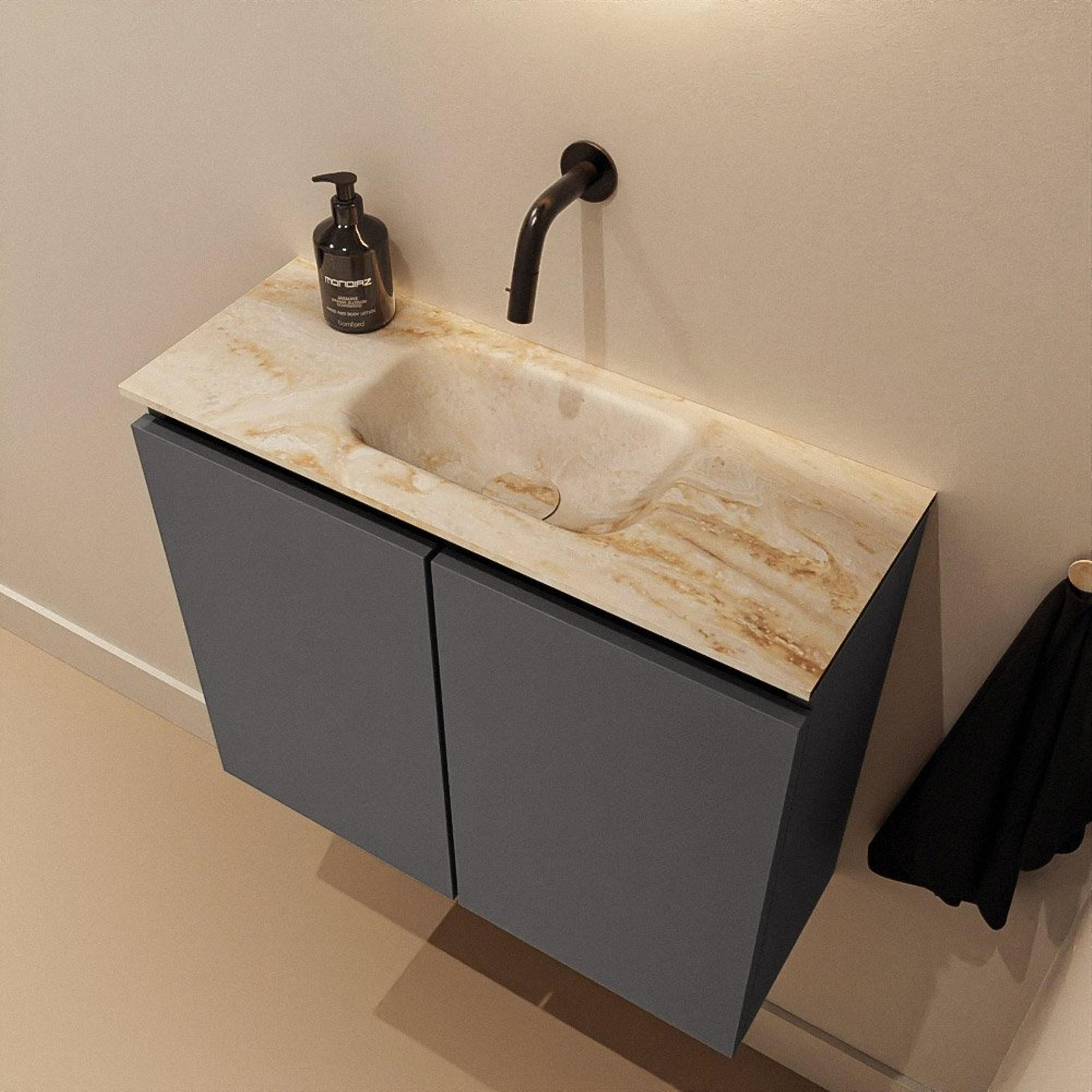 MONDIAZ TURE-DLUX 60cm toiletmeubel Dark Grey. EDEN wastafel Frappe positie midden. Zonder kraangat.