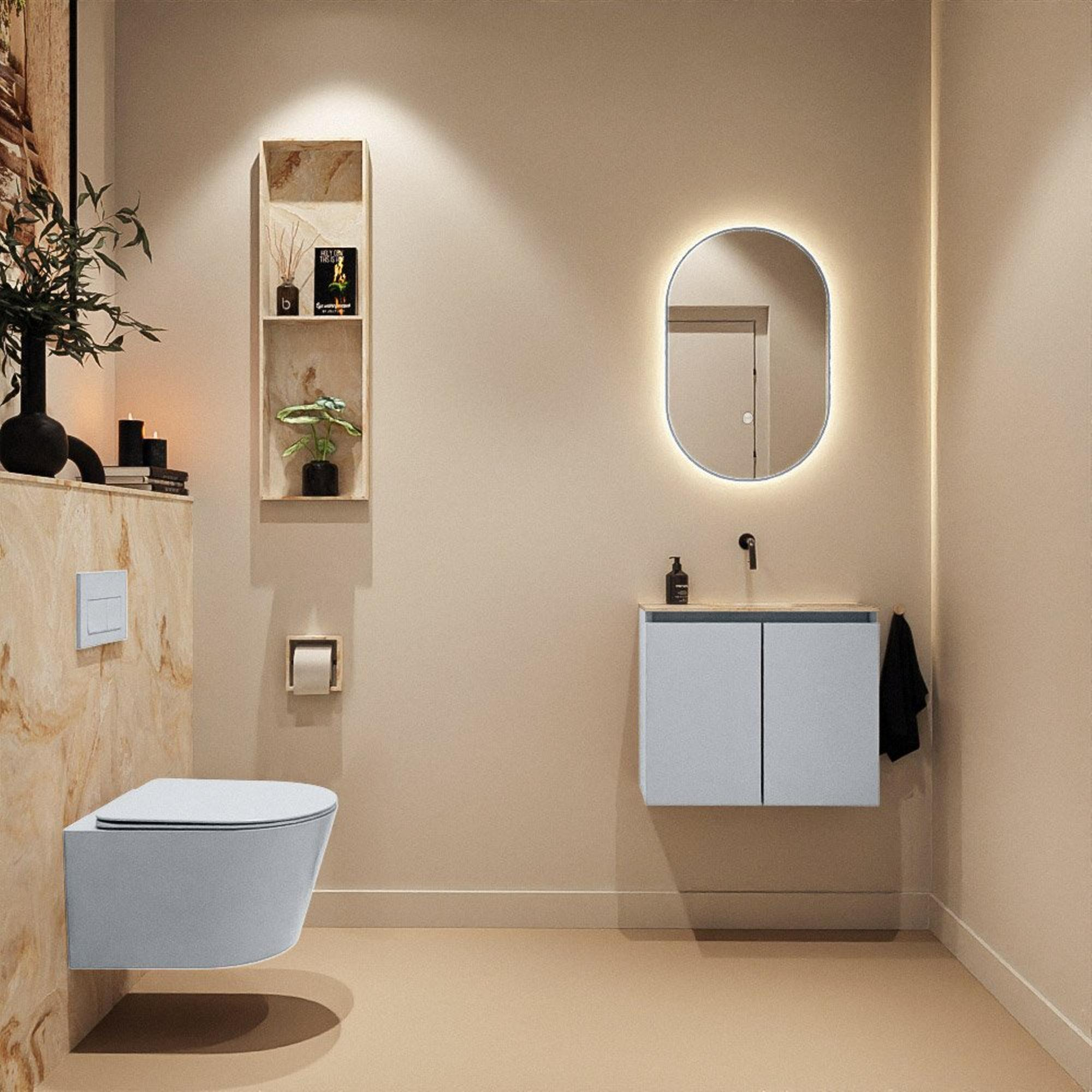 MONDIAZ TURE-DLUX 60cm toiletmeubel Clay. EDEN wastafel Frappe positie midden. Zonder kraangat.