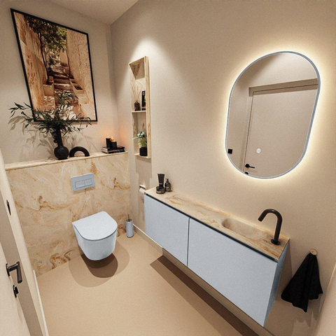 MONDIAZ TURE-DLUX 120cm toiletmeubel Clay. EDEN wastafel Frappe positie rechts. Met 1 kraangat.