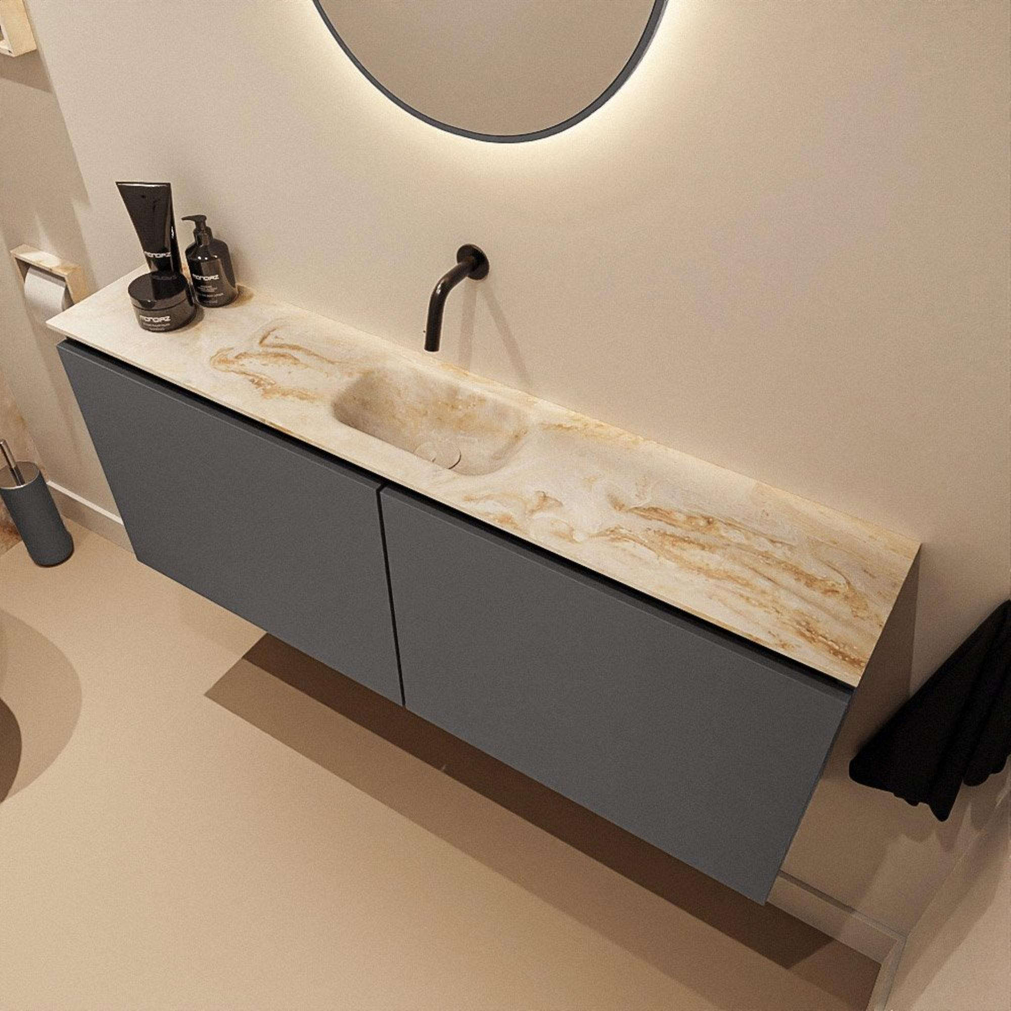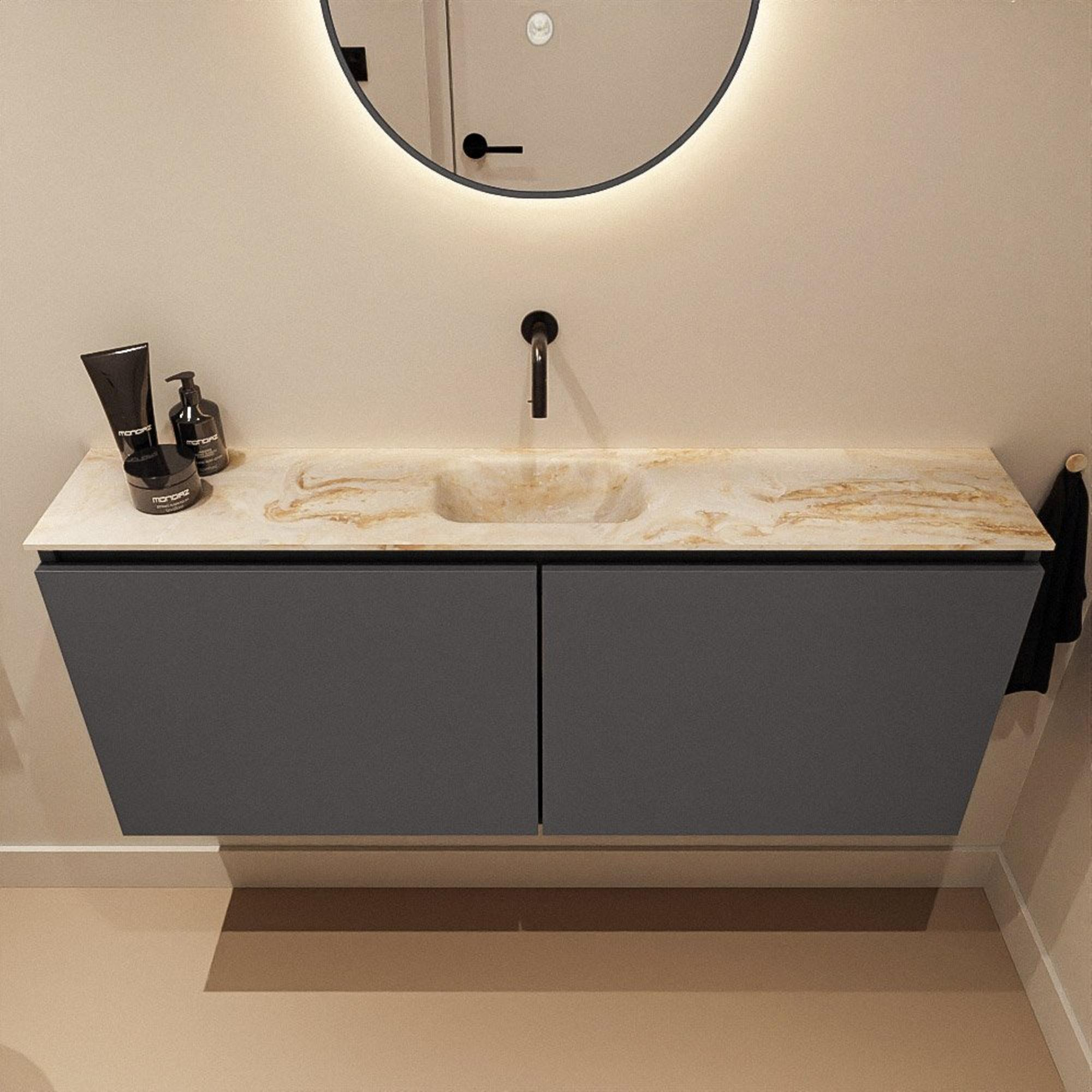 MONDIAZ TURE-DLUX 120cm toiletmeubel Dark Grey. EDEN wastafel Frappe positie midden. Zonder kraangat.