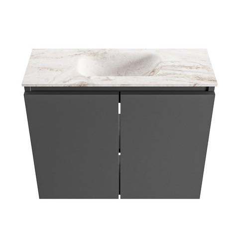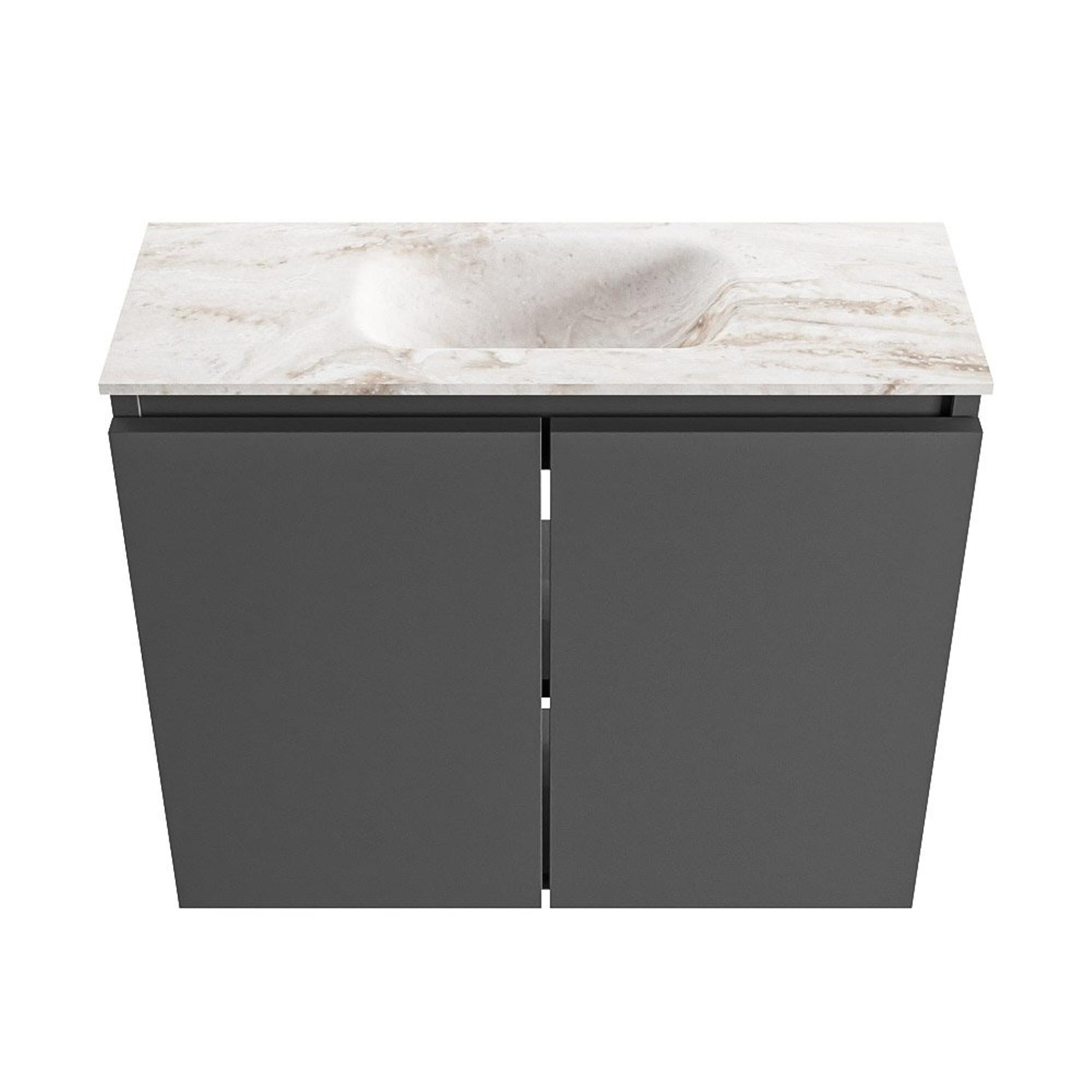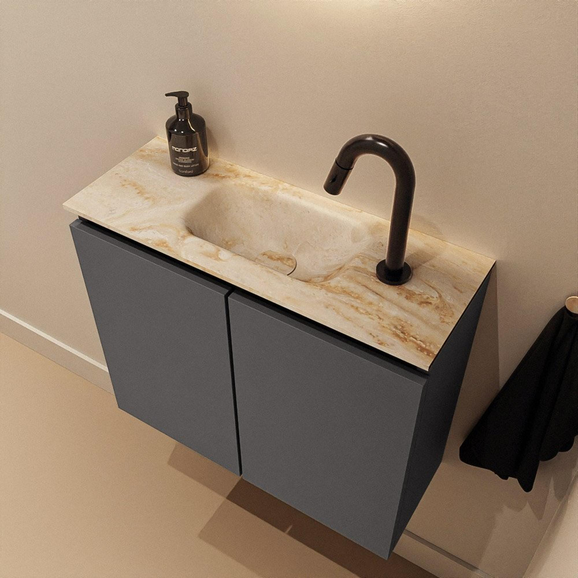 MONDIAZ TURE-DLUX 60cm toiletmeubel Dark Grey. EDEN wastafel Frappe positie midden. Met 1 kraangat.