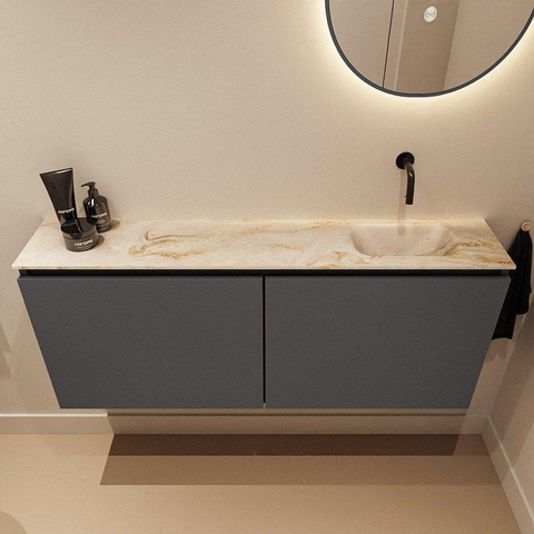 MONDIAZ TURE-DLUX 120cm toiletmeubel Dark Grey. EDEN wastafel Frappe positie rechts. Zonder kraangat.