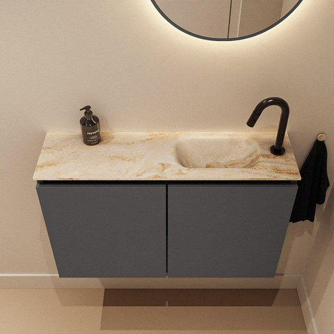 MONDIAZ TURE-DLUX 80cm toiletmeubel Dark Grey. EDEN wastafel Frappe positie rechts. Met 1 kraangat.