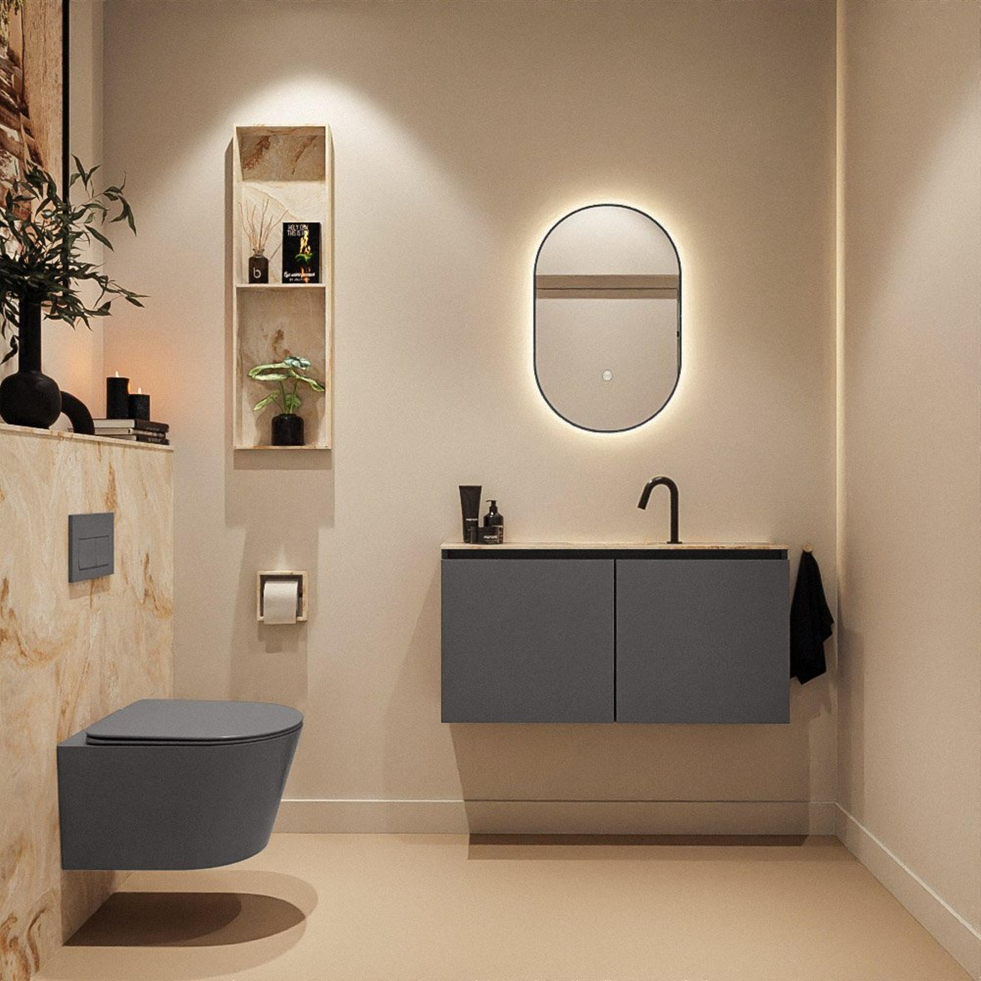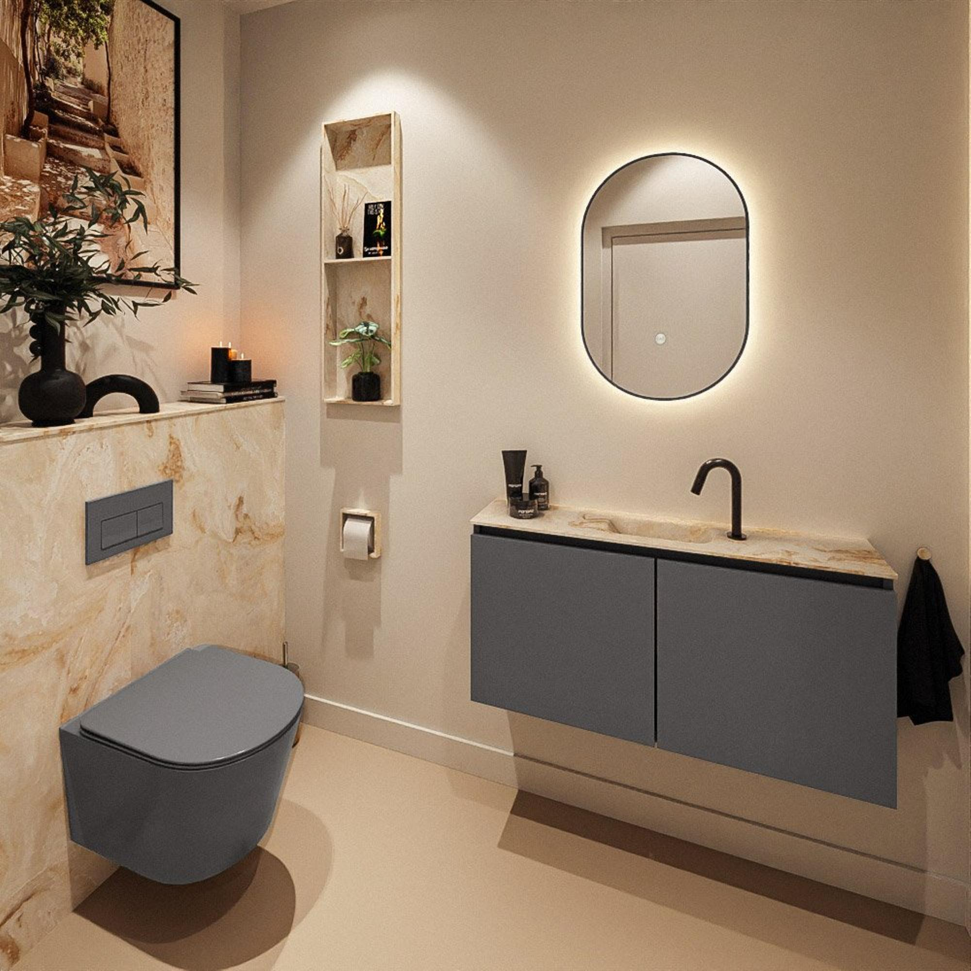 MONDIAZ TURE-DLUX 100cm toiletmeubel Dark Grey. EDEN wastafel Frappe positie midden. Met 1 kraangat.