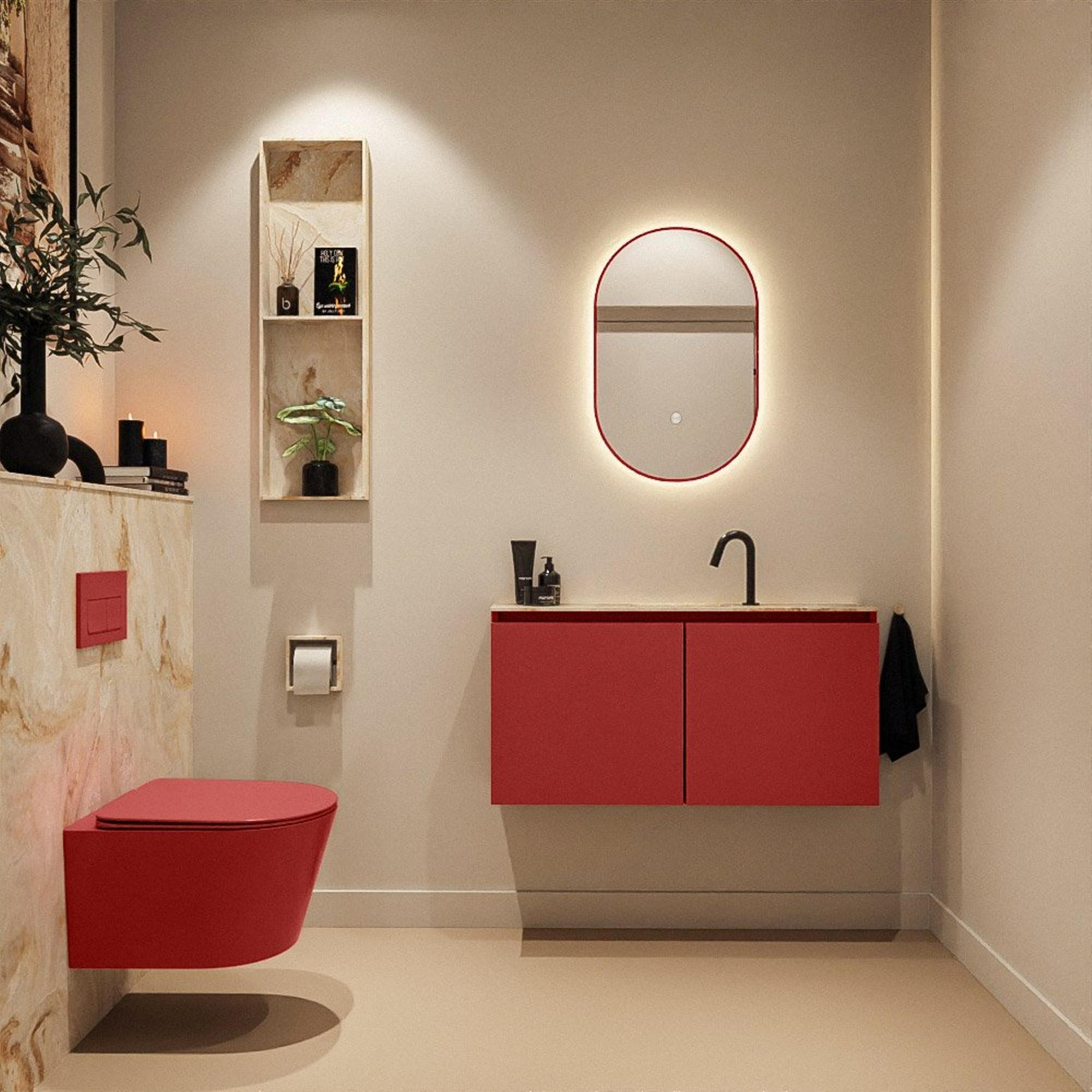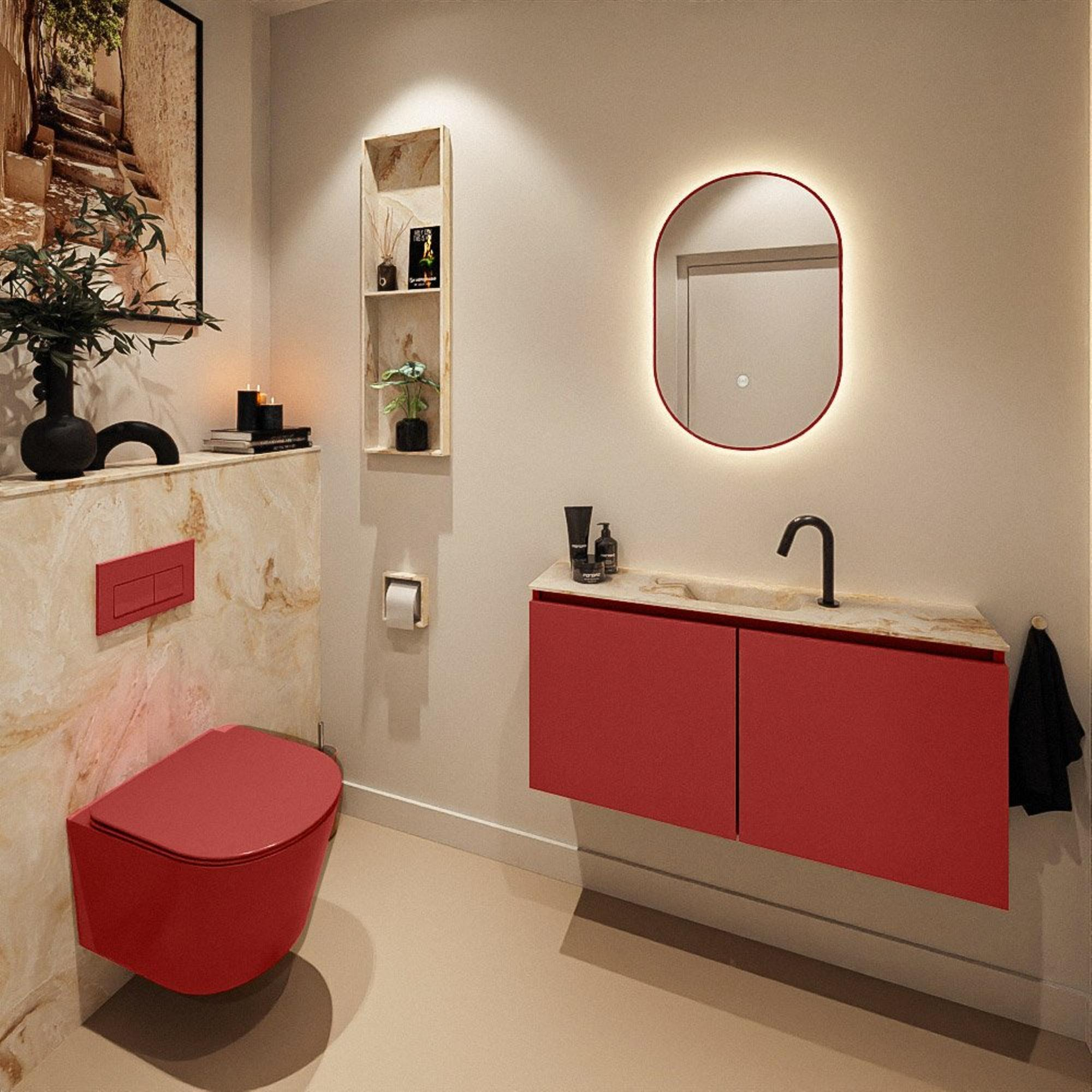 MONDIAZ TURE-DLUX 100cm toiletmeubel Fire. EDEN wastafel Frappe positie midden. Met 1 kraangat.
