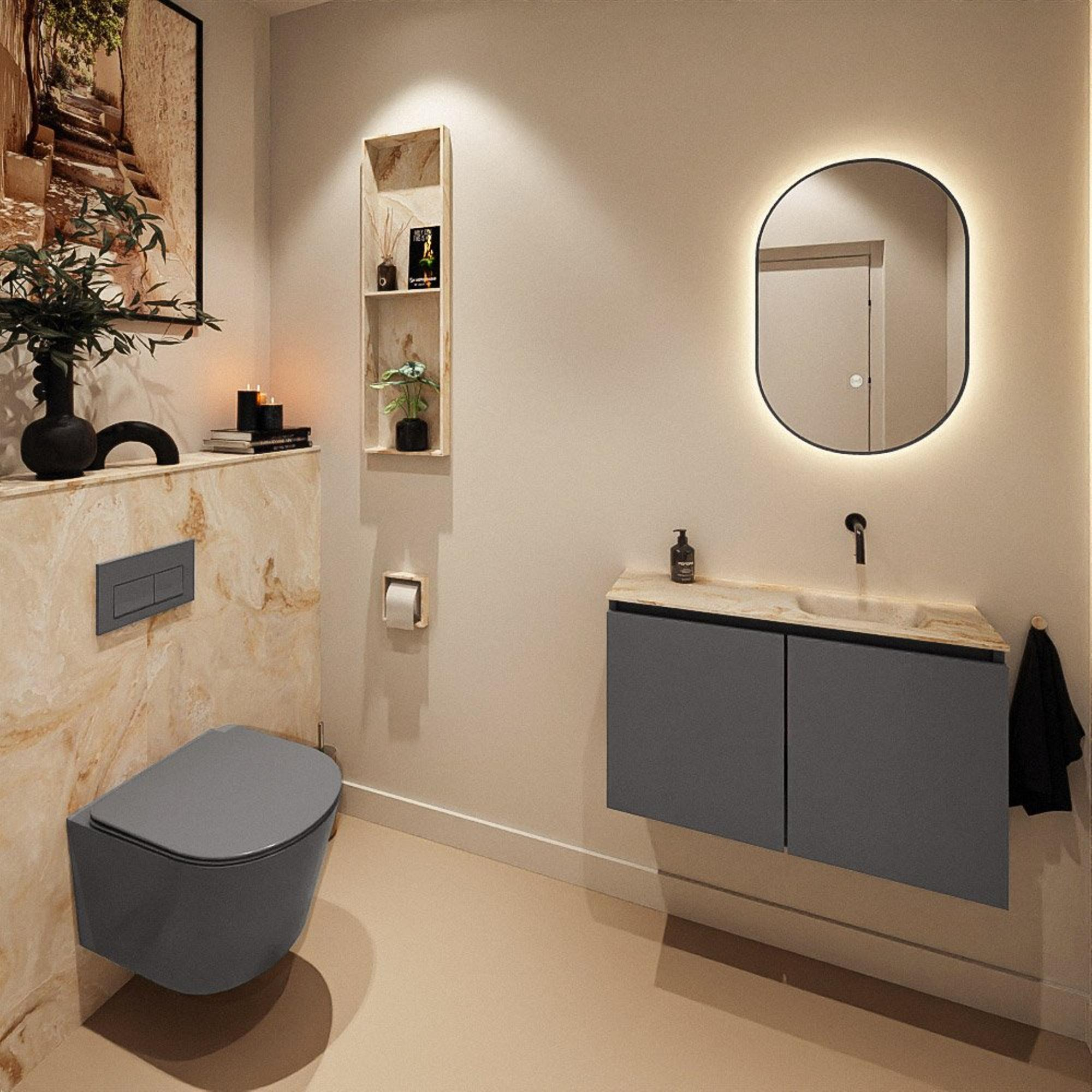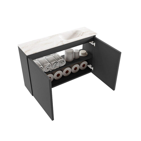 MONDIAZ TURE-DLUX 80cm toiletmeubel Dark Grey. EDEN wastafel Frappe positie rechts. Zonder kraangat.